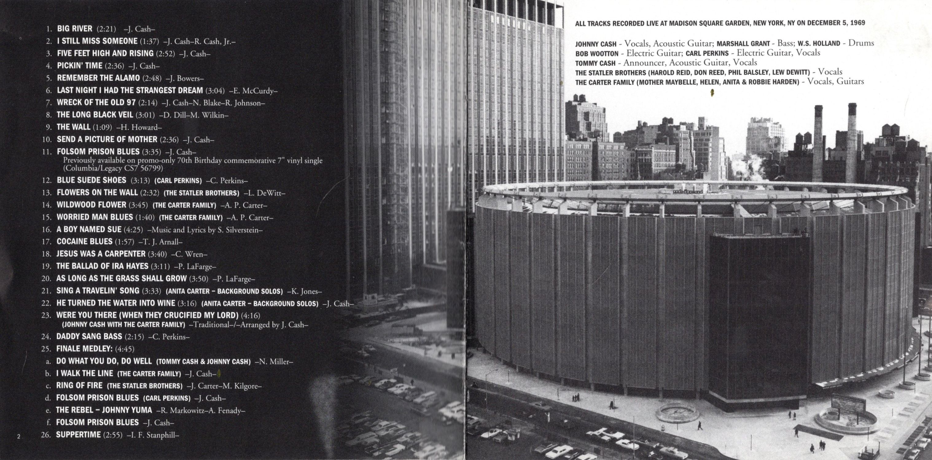 The show was performed in the round on a stage that rotated, thus giving a much more intimate feeling to Johnny and his audience. During sound check the afternoon of the show, Johnny, Carl Perkins, The Statler Brothers and the Carter Family found the acoustics in the middle of the Garden with no audience to absorb some of the sound feedback quite unnerving. Fortunately, once the show began, these concerns disappeared as attested to by this album.