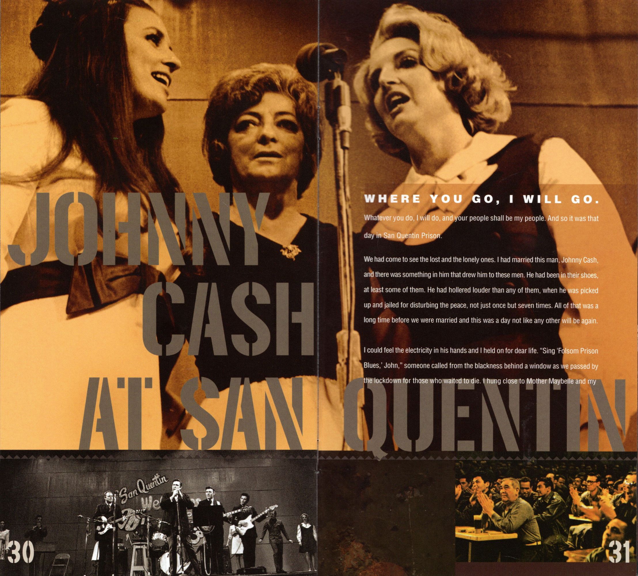 On February 24, 1969, two days before he turned 37, the legendary Johnny Cash led his traveling troupe behind the foreboding walls of the California State Penitentiary at San Quentin, long known as one of America's toughest prisons. Thirteen months earlier, the Johnny Cash Show made musical history when they appeared at another notorious California state pen. That concert yielded what became Cash's best-selling album up to that time. JOHNNY CASH AT FOLSOM PRISON, which in July 1968 entered the Billboard LP chart and stayed on it for 39 weeks, reaching number 13.