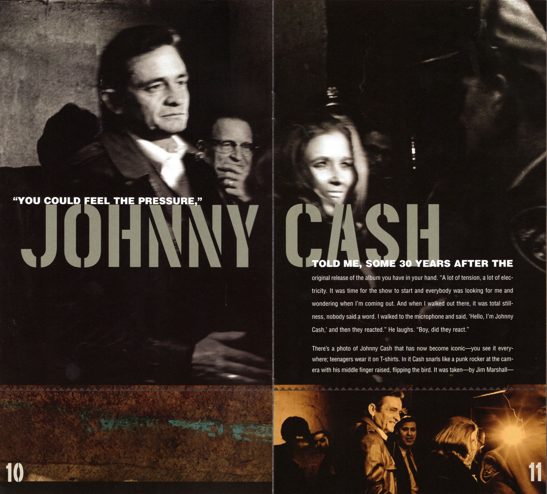 "You could feel the pressure," Johnny Cash told me some 30 years after the original release of the album you have in your hand. "A lot of tension, a lot of electricity. It was time for the show to start and everybody was looking for me and wondering when I'm coming out. And when I walked out there, it was total stillness, nobody said a word. I walked to the microphone and said, 'Hello, I'm Johnny Cash,' and then they reacted." He laughs. "Boy, did they react."