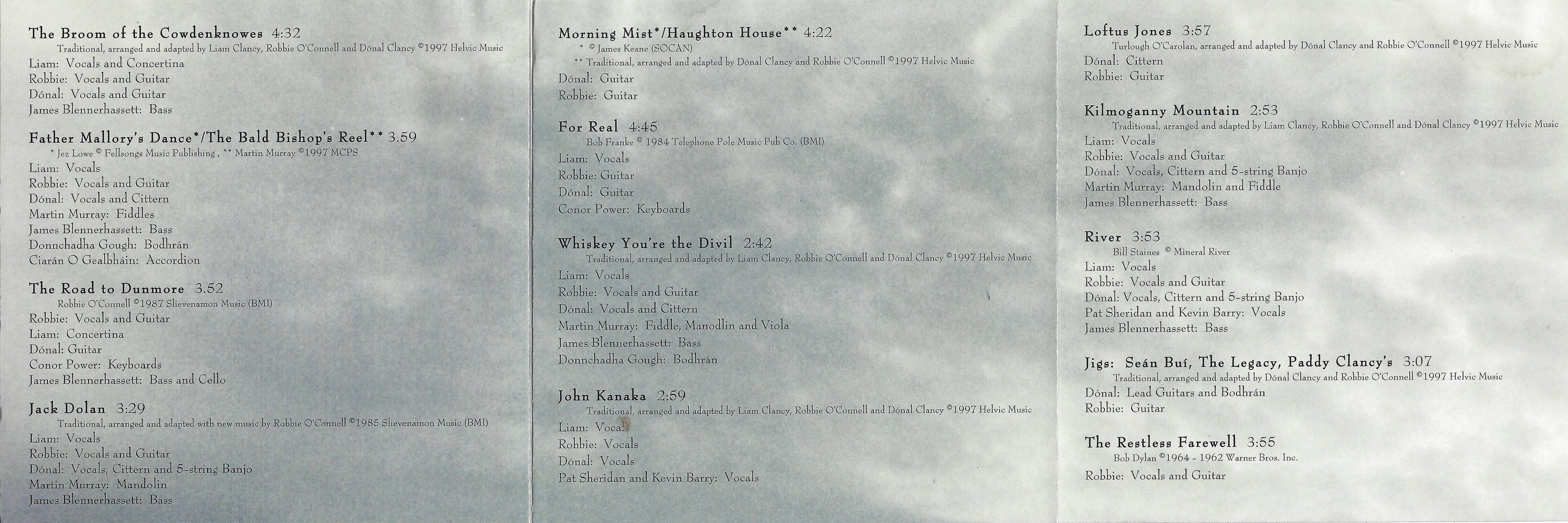 - Produced by Liam Clancy, Robbie O'Connell, & Dónal Clancy