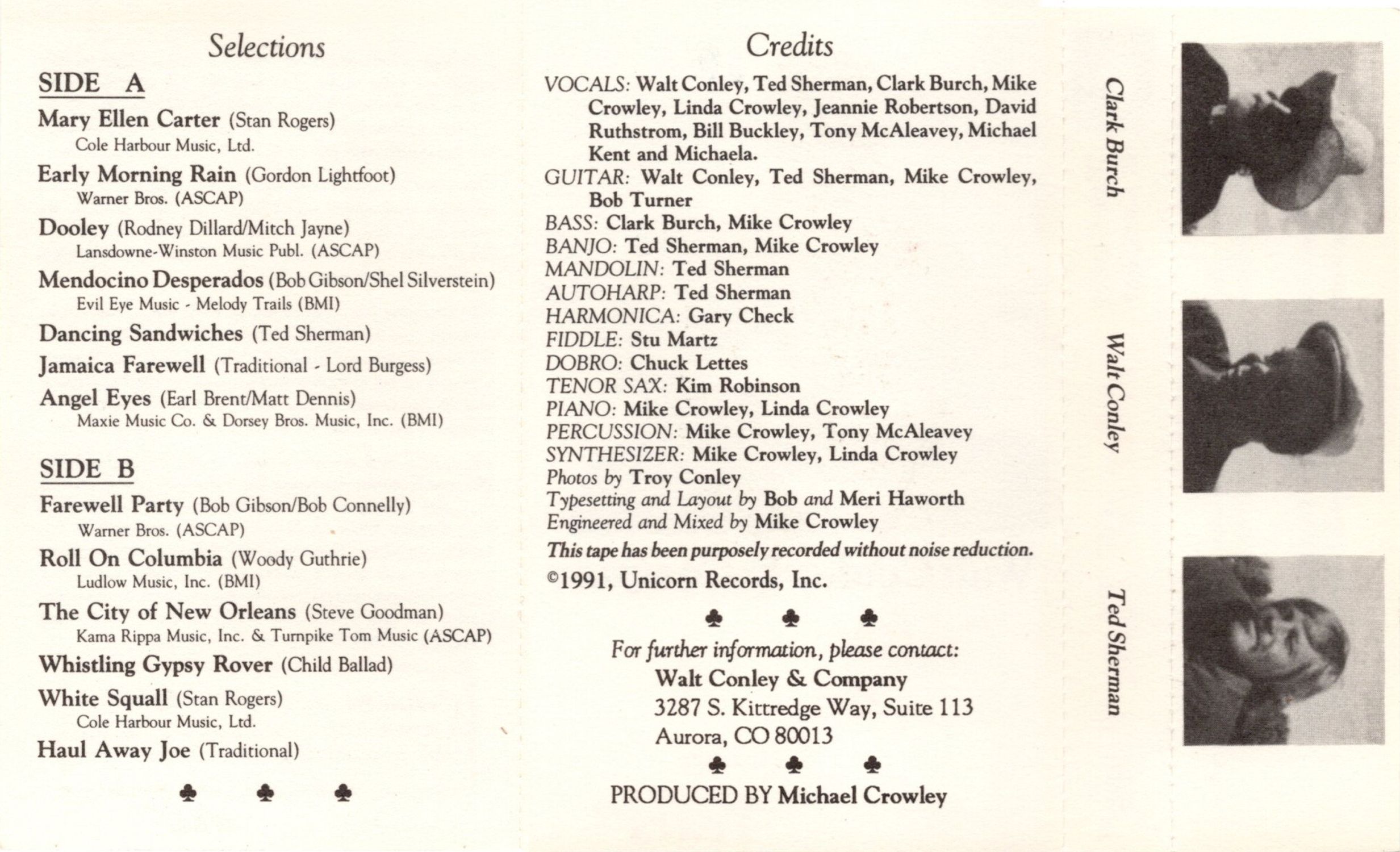 My special and sincere thanks to the following folks: Michael Crowley for being the recording genius that he is; Colin Thompson for introducing me to the music of Stan Rogers; Tony McAleavey for taking me off to Ireland to see what I sing about; every musician who played or sang a note on this album; my wonderful wife, Joan, for her constant support on this project; and, most importantly, the two people who really make it Conley and Company — Clark Burch and Ted Sherman.