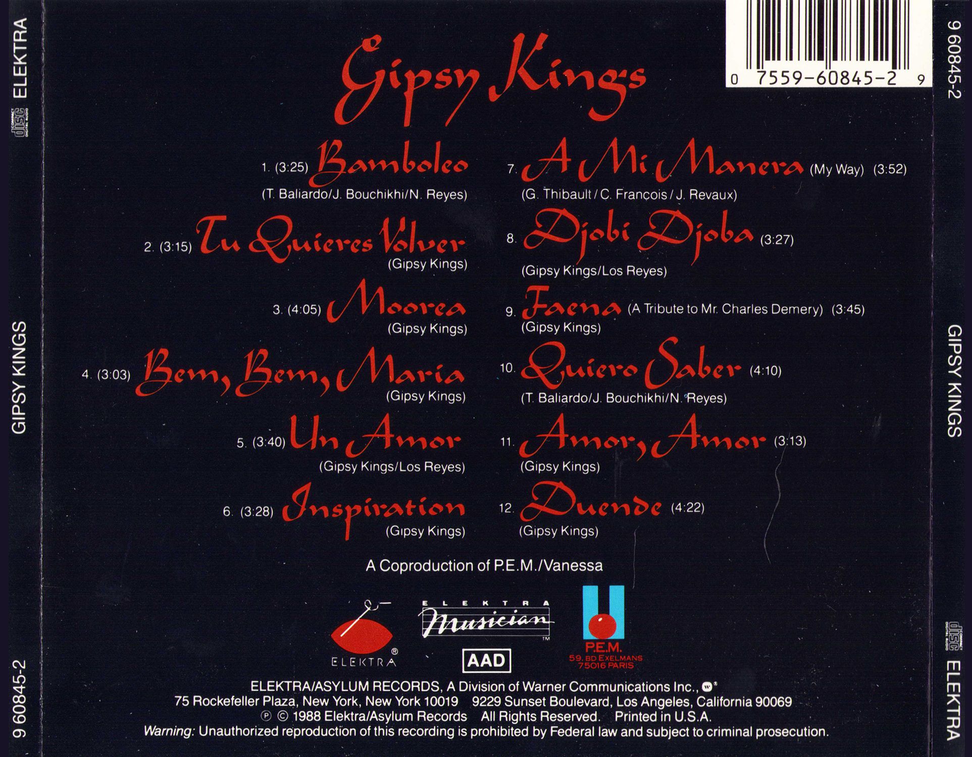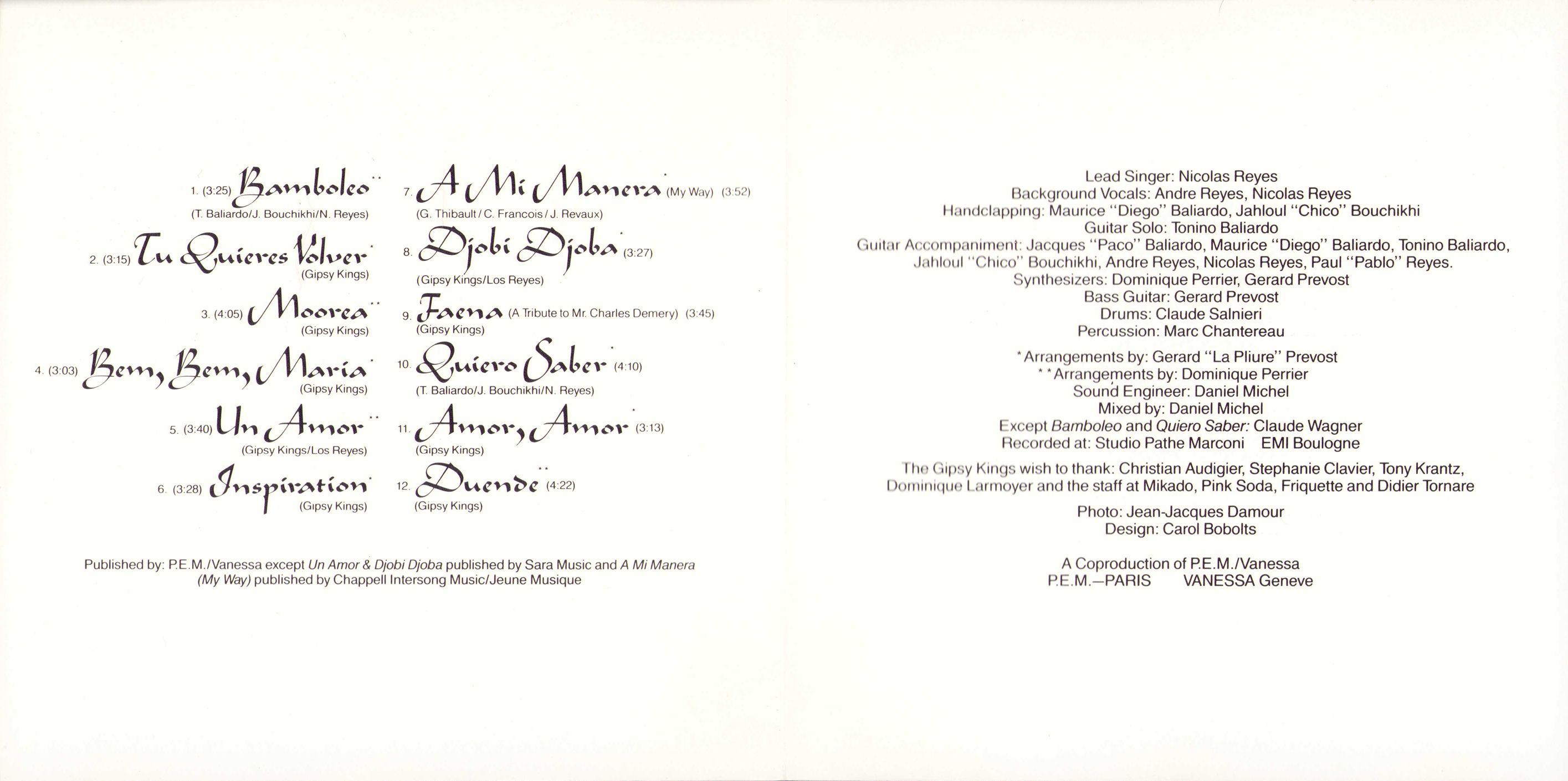 - The Gipsy Kings wish to thank: Christian Audigier, Stephanie Clavier, Tony Krantz, Dominique Larmoyer & the staff at Mikado, Pink Soda, Friquette & Didier Tornare