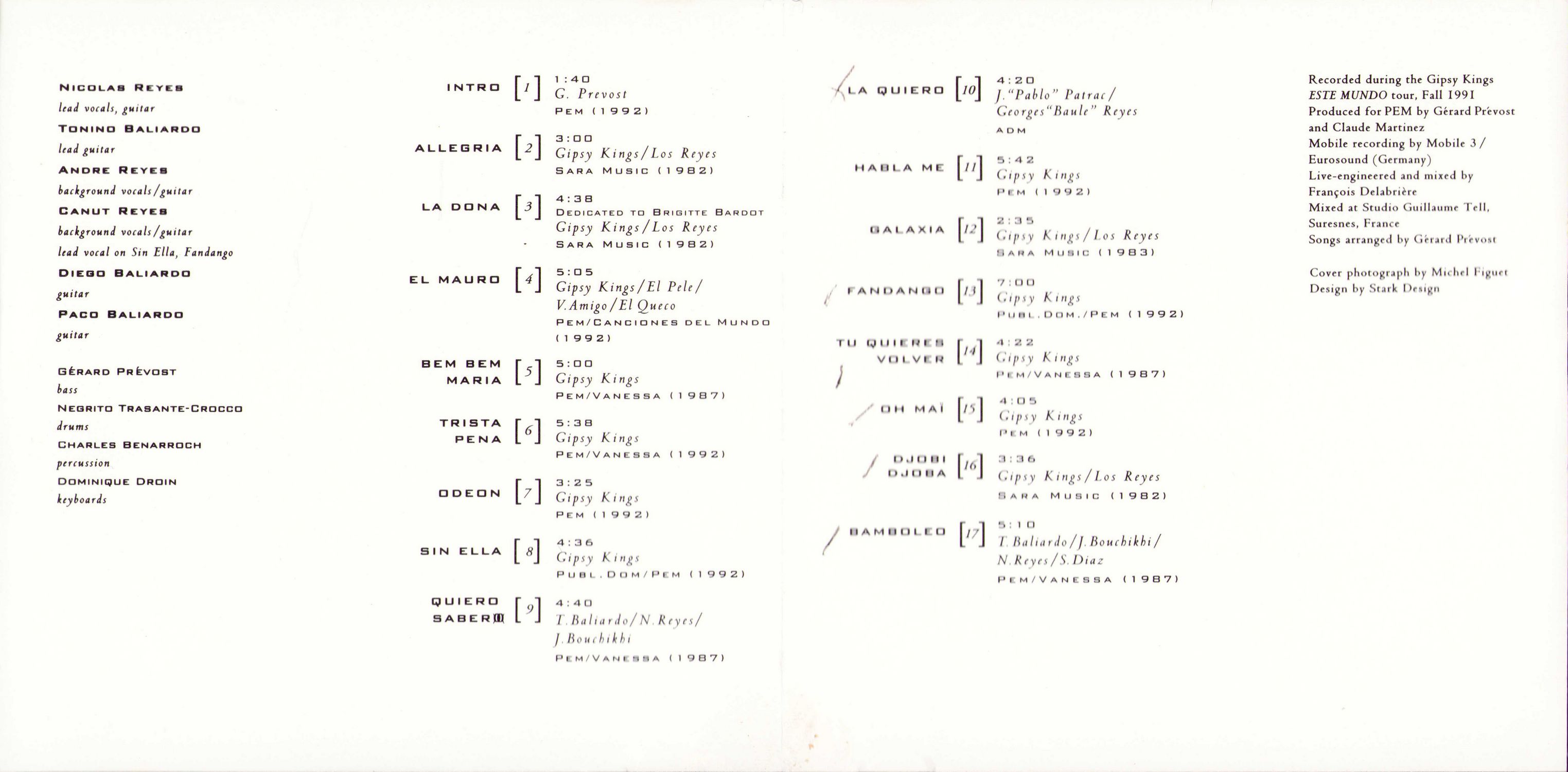 - Recorded during the Gipsy Kings Este Mundo tour, Fall 1991