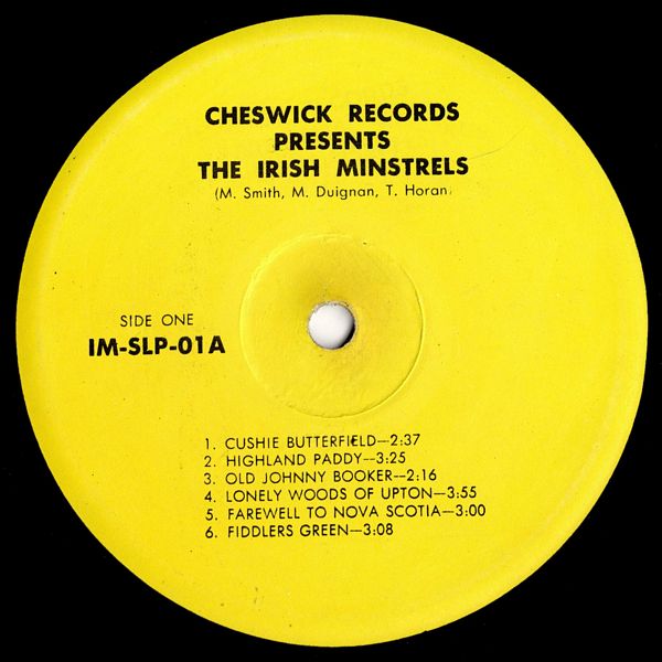 One question frequently asked in Irish clubs throughout the United States is "when are the Minstrels coming back"? This should sum up the tremendous popularity of this Chicago-based group. Mike Duignan from county Down and Martin Smith and Terry Horan from county Dublin make up a trio of brilliant conversationists, singers and musicians. It is not unusual for them to receive complete silence as Big Mike sings Kevin Barry or Four Green Fields. Their rapport with the audience is so lighthearted that oftentimes there are requests for a specific joke. Needless to say one of the boys always obliges. Perhaps though their greatest ability is to have an audience clapping and stomping within minutes of their stage appearance. On this record the boys are accompanied by Seth Brady on his fretless electric bass which gives a special touch to the song "Kiandra". The songs are of a wide variety which should please most Irish music lovers. As Don Hearn of the Washington Daily News said, "The Minstrels are a sheer delight". I think you'll agree.