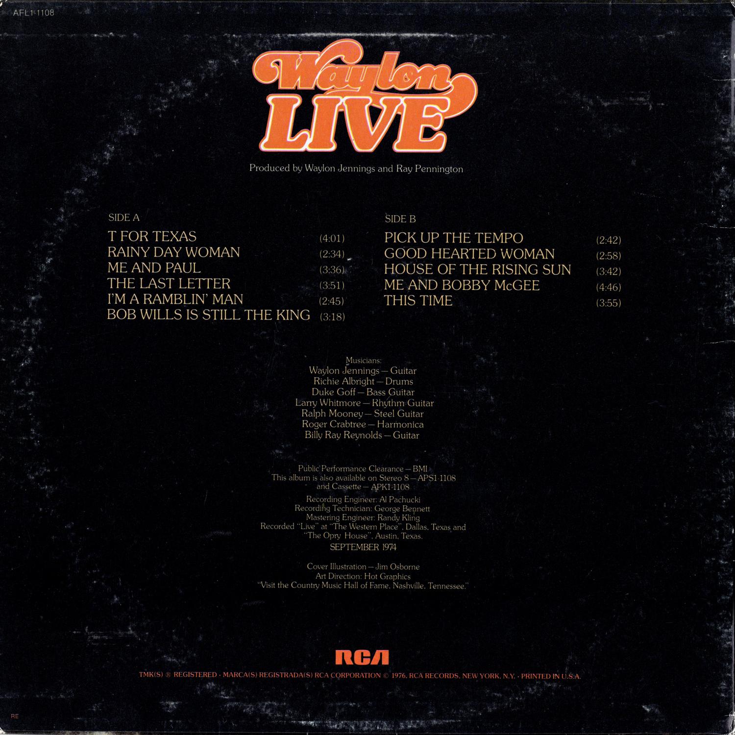 - Recorded "Live" at "The Western Place", Dallas, Texas & "The Opry House". Austin, Texas — September 1974