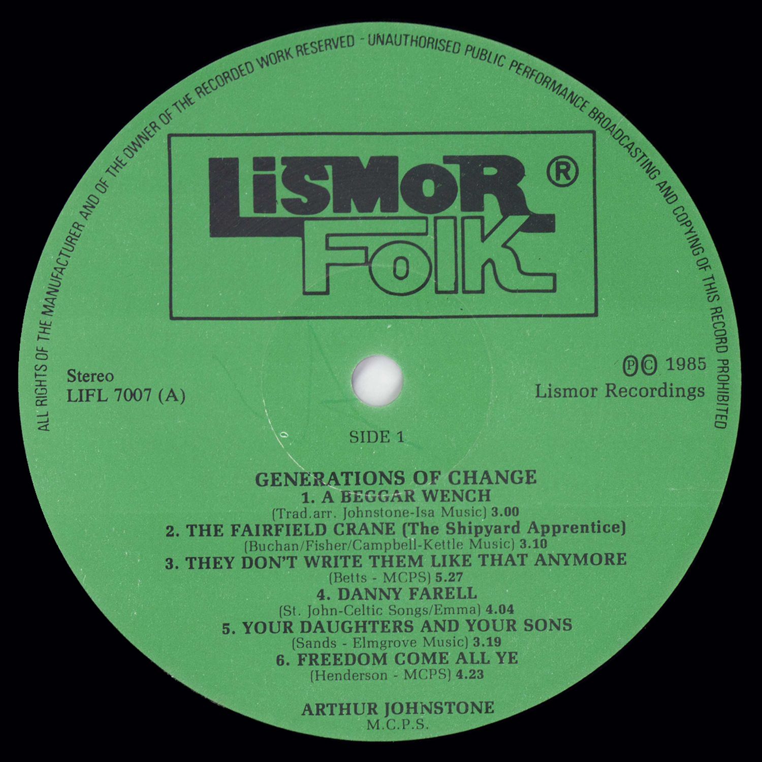 When I first found out that there were people singing and playing what are usually called "Folk Songs" — Arthur Johnstone was there.