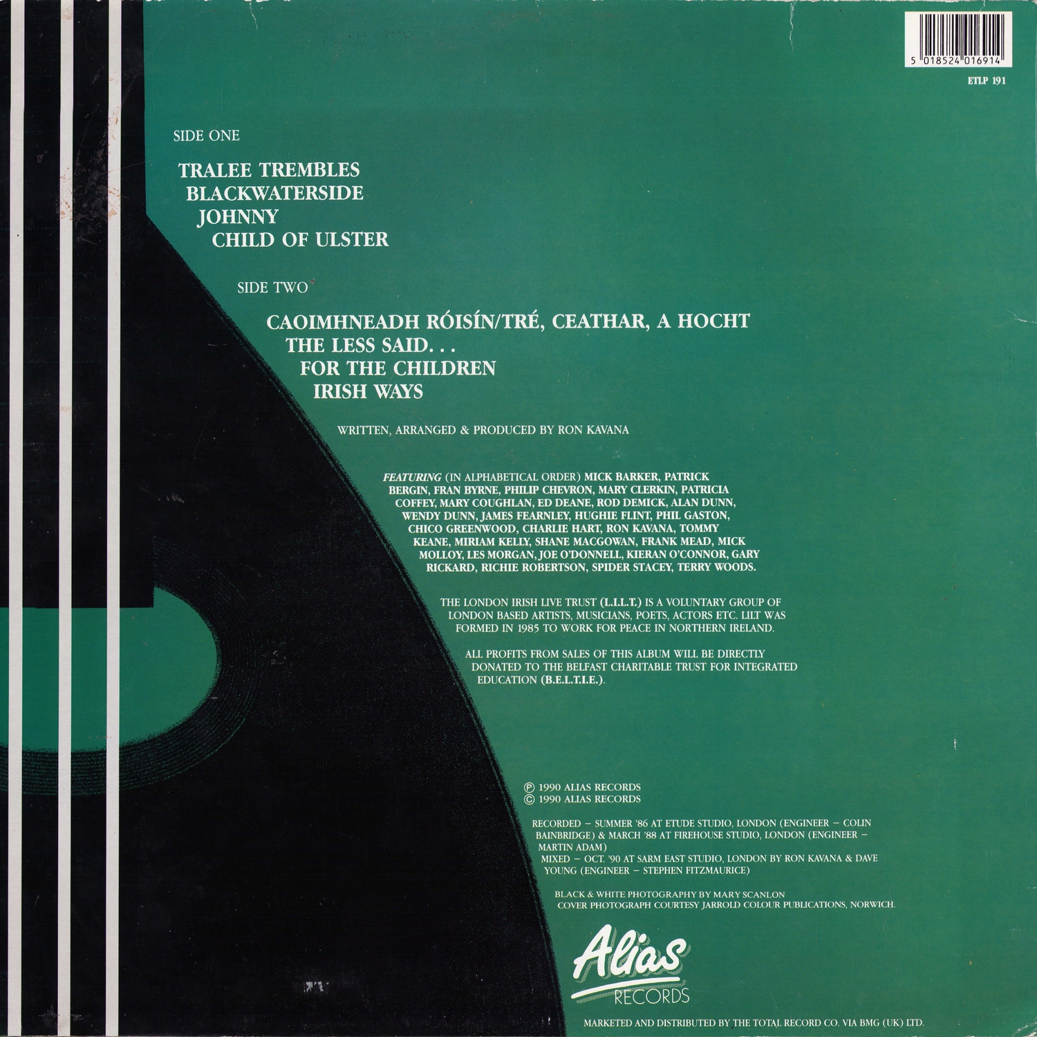 The London Irish Trust (LILT) is a voluntary group of London Based Artists, Musicians, Poets, Actors etc. LILT was formed in 1985 to work for Peace in Northern Ireland.