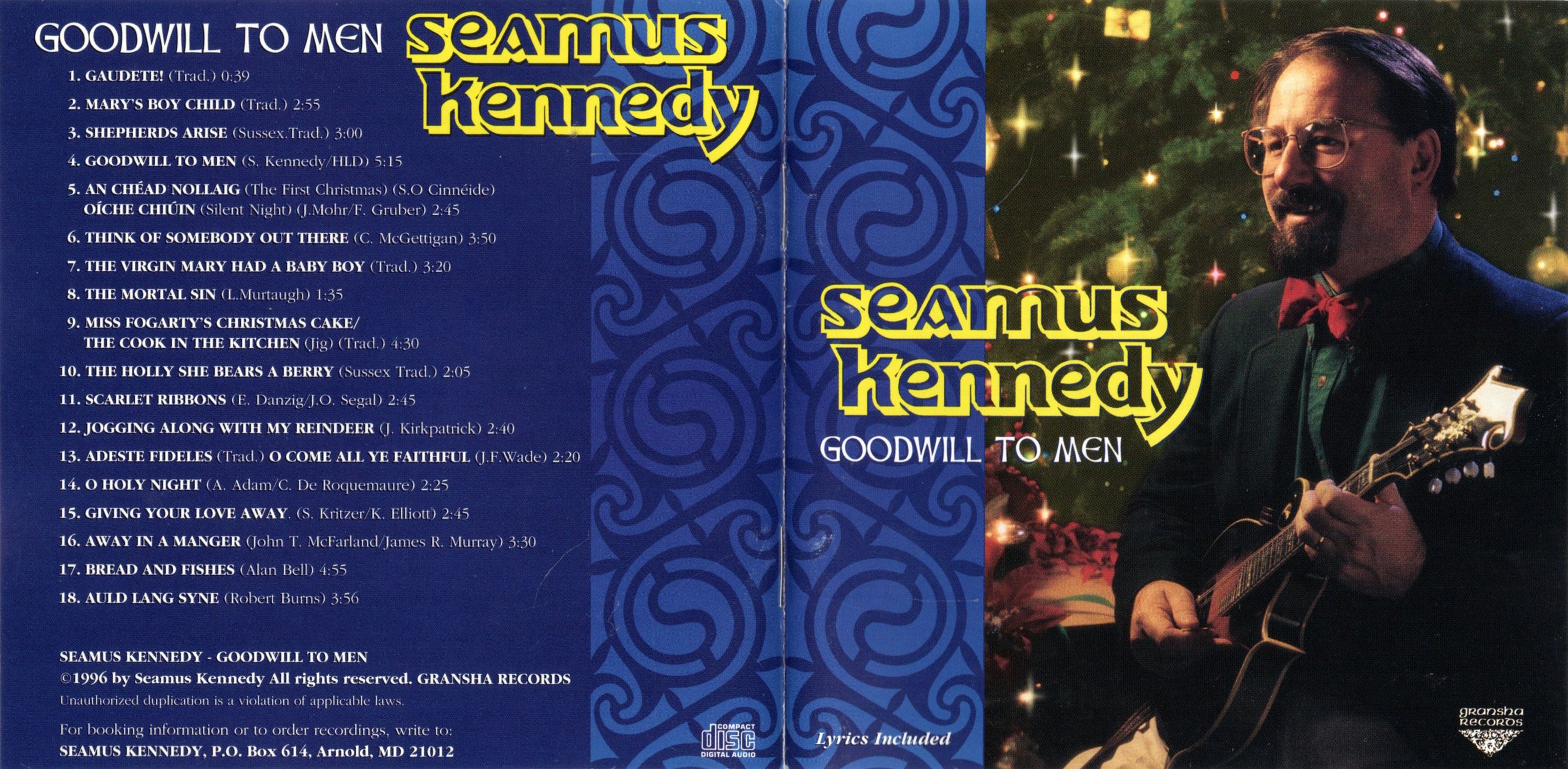 Goodwill To Men — These words were put to the tune of the old Scottish ballad, "The Loch Tay Boat Song," and this was the result. I like the haunting quality of Mark Hillman's uilleann pipes and Mike Auldridge's dobro and this song expresses a lot of what Christmas means to me.