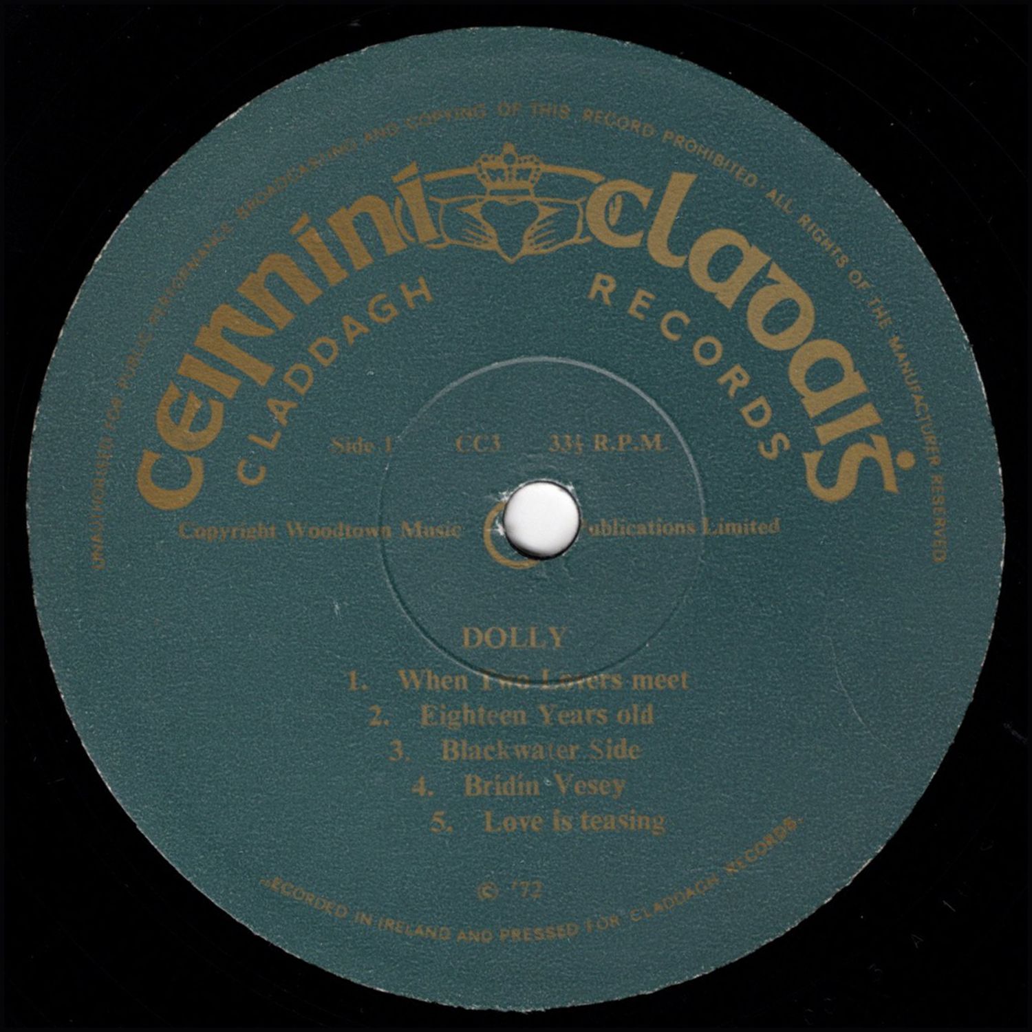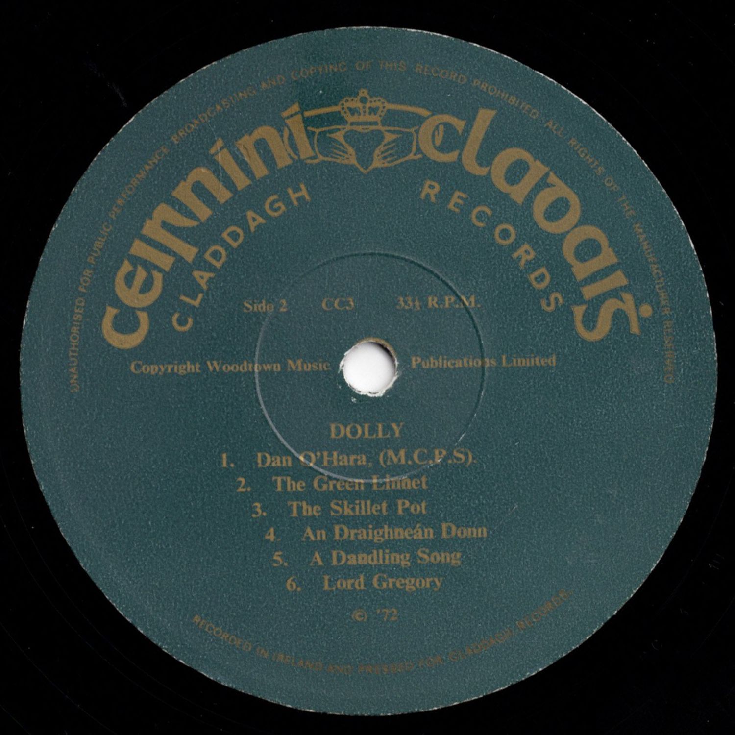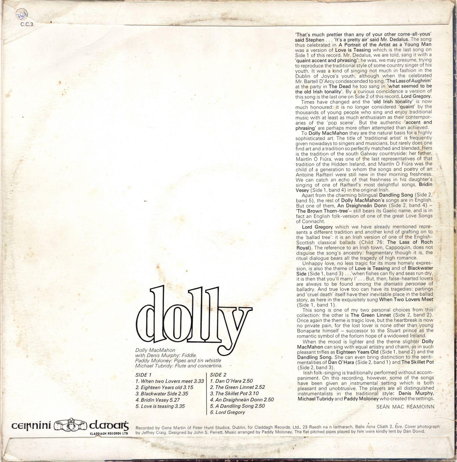 When the mood is lighter and the theme slighter Dolly MacMahon can sing with equal artistry and charm, as in such pleasant trifles as Eighteen Years Old (Side 1, band 2) and the Dandling Song. She can even bring distinction to the sentimentalities of Dan O'Hara (Side 2, band 1) and The Skillet Pot (Side 2, band 3).