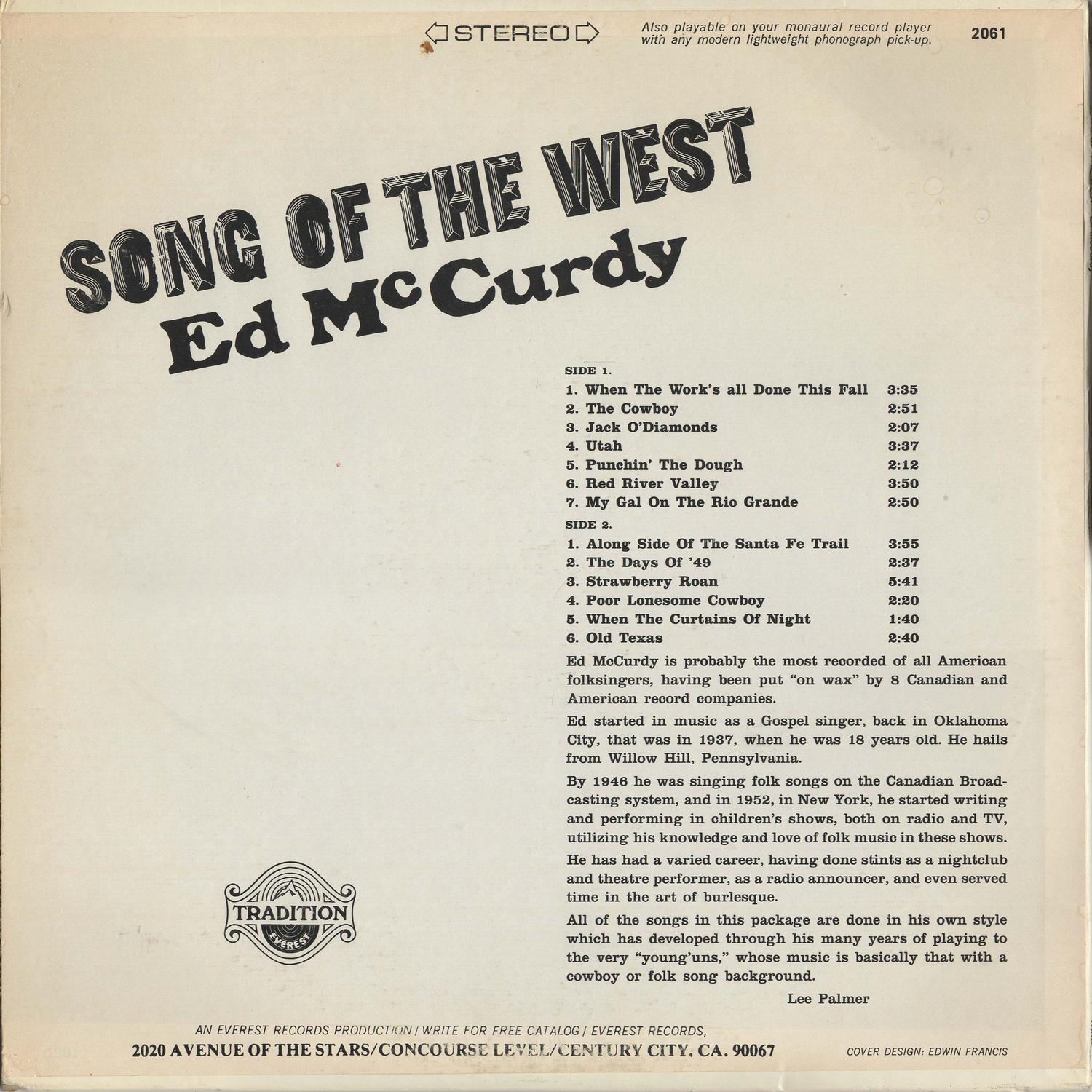 Ed McCurdy is probably the most recorded of all American folksingers, having been put "on wax" by 8 Canadian and American record companies.