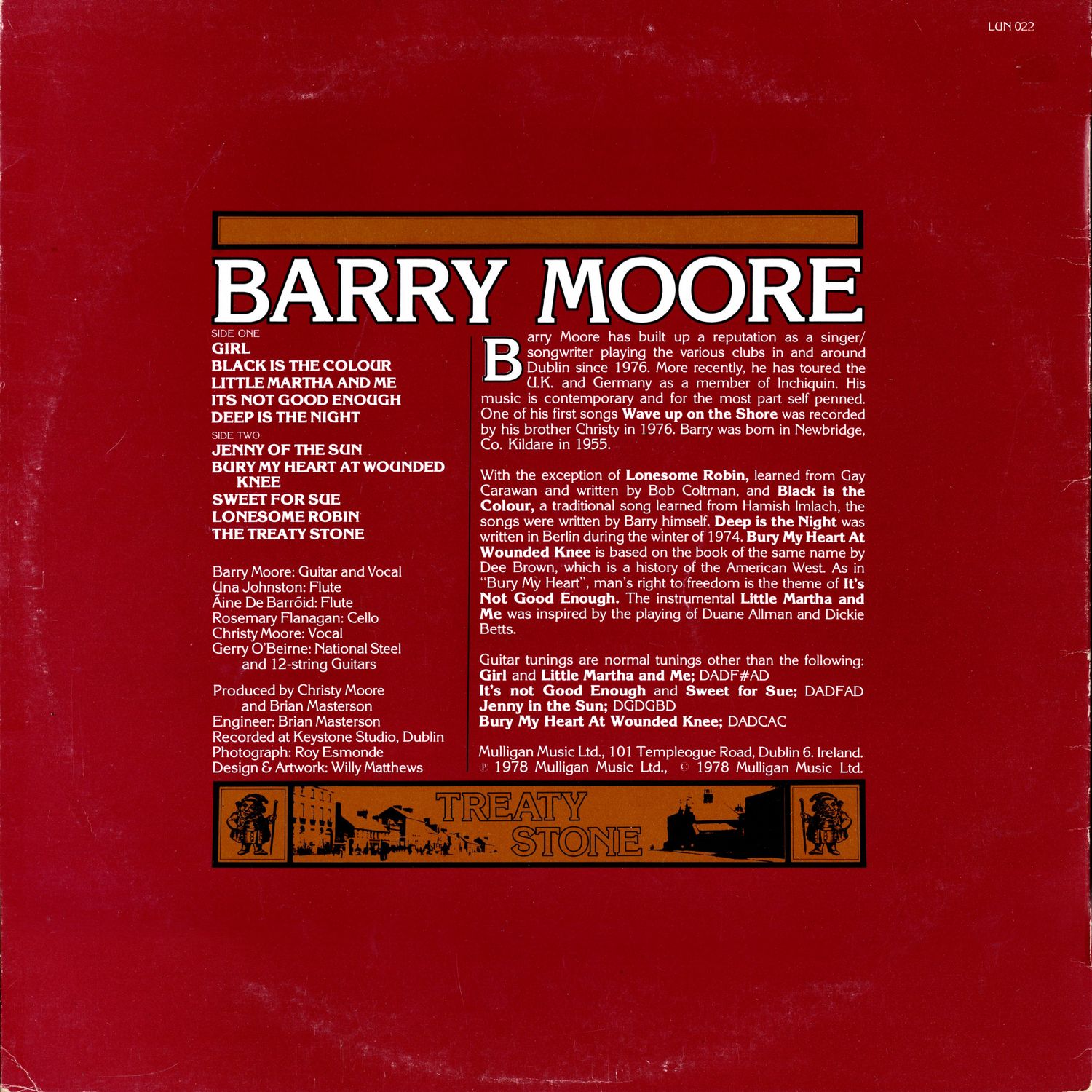 Barry Moore has built up a reputation as a singer/songwriter playing the various clubs in and around Dublin since 1976. More recently, he has toured the UK and Germany as a member of Inchiquin. His music is contemporary and for the most part self penned. One of his first songs Wave Up To The Shore was recorded by his brother Christy in 1976. Barry was born in Newbridge, Co. Kildare in 1955.