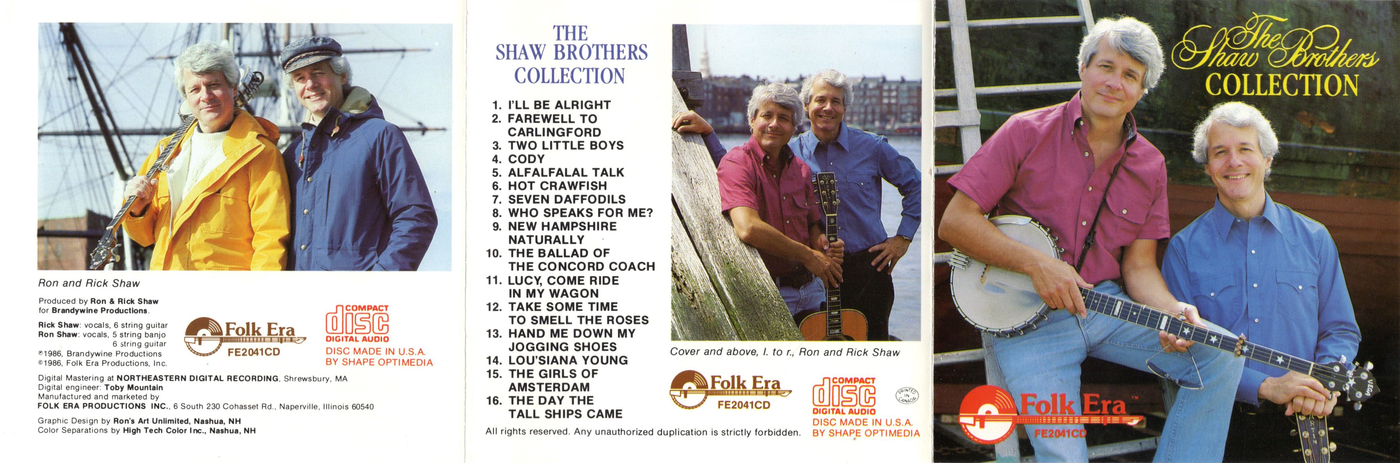 So there you have it. We believe you will enjoy listening to The Shaw Brothers Collection. Here is variety, spice and life. All songs except "Hand Me Down My Jogging Shoes", "Lou'siana Young" and the fully-orchestrated cuts were recorded in New Hampshire. The latter were done in New York and London, England.