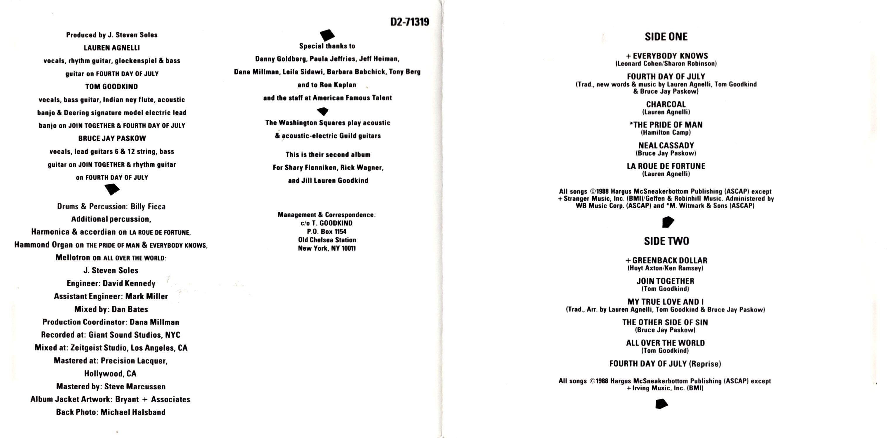 - Special thanks to Danny Goldberg, Paula Jeffries. Jeff Heiman, Dana Millman, Leila Sidawi, Barbara Babchick, Tony Berg and to Ron Kaplan and the staff at American Famous Talent