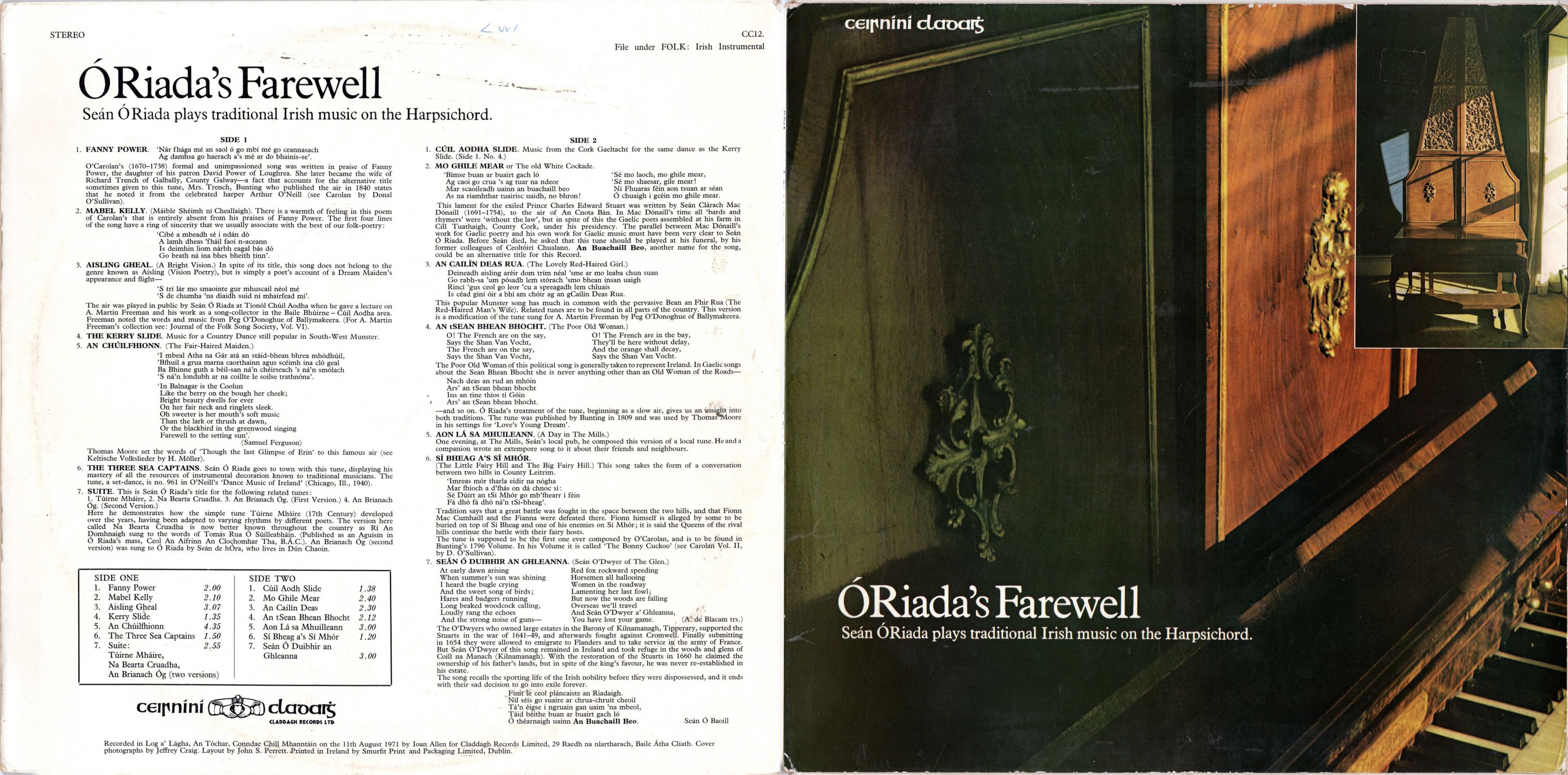 His more notable achievements in music have always involved others — the musicians and poets of the Gaelic past, his own Ceoltóirí, his adopted community in Coolea. These achievements, despite their communal aspect, were truly individual; like all art, they stemmed from one tragically perishable talent. It is appropriate that Ó Riada's last offering should be not only traditional but a display of individual mastery.