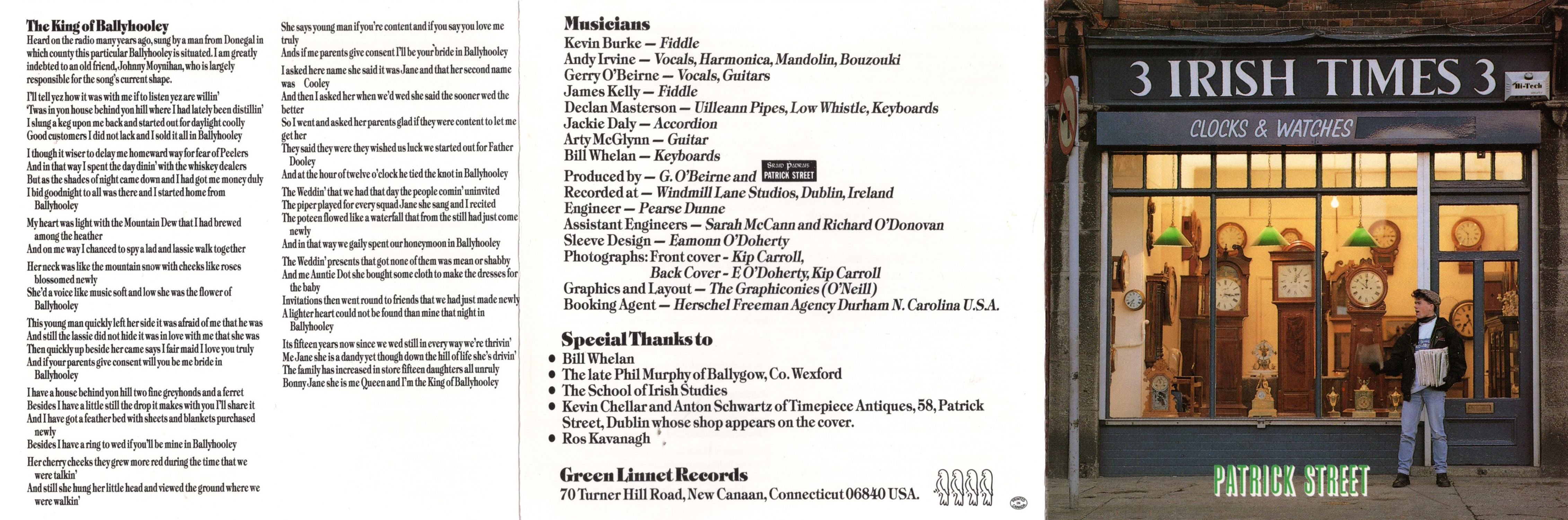 The King of Ballyhooley — Heard on the radio many years ago, sung by a man from Donegal in which county this particular Ballyhooley is situated. I am greatly indebted to an old friend, Johnny Moynihan, who is largely responsible for the song's current shape.