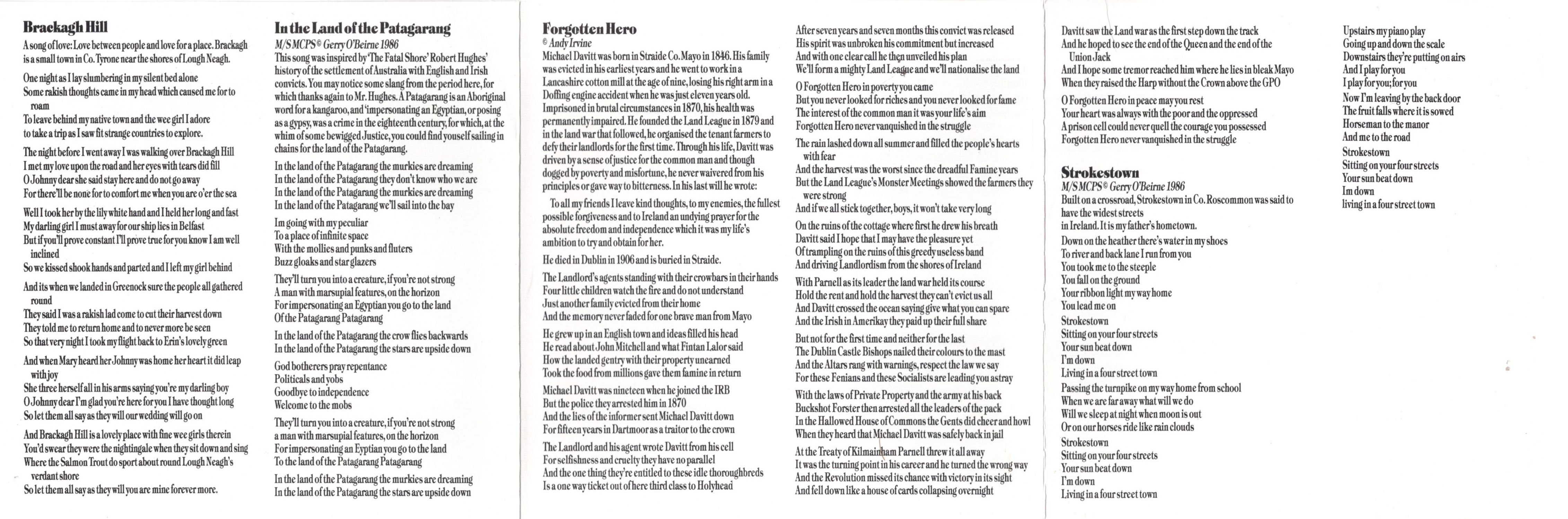 Brackagh Hill — A song of love: Love between people and love for a place. Brackagh is a small town in Co. Tyrone near the shores of Lough Neagh.