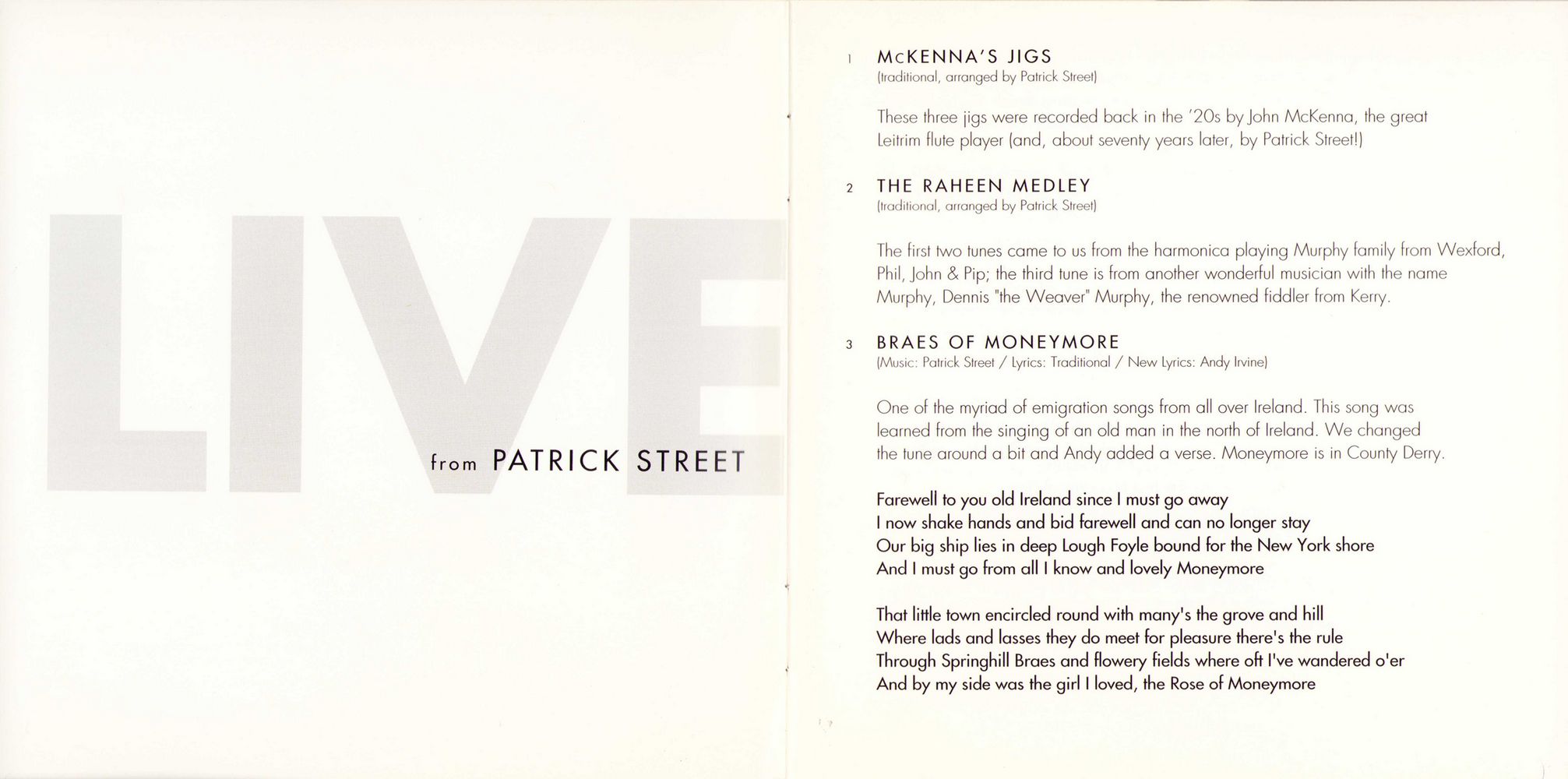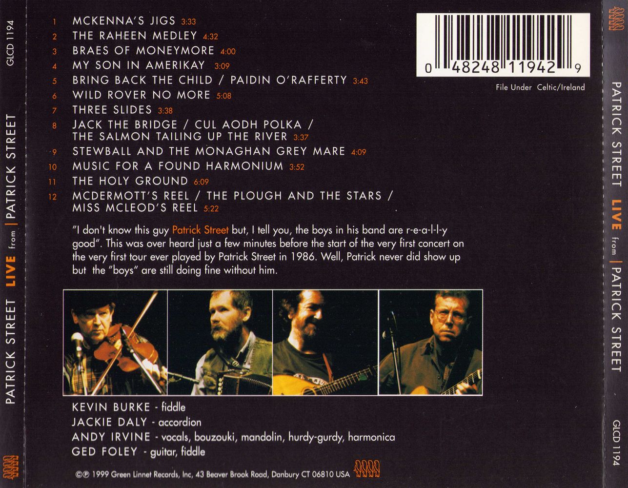 "I don't know this guy Patrick Street but, I tell you, the boys in his band are r-e-a-l-l-y good". This was over heard just a few minutes before the start of the very first concert on the very first tour ever played by Patrick Street in 1986. Well, Patrick never did show up but the "boys" are still doing fine without him."
