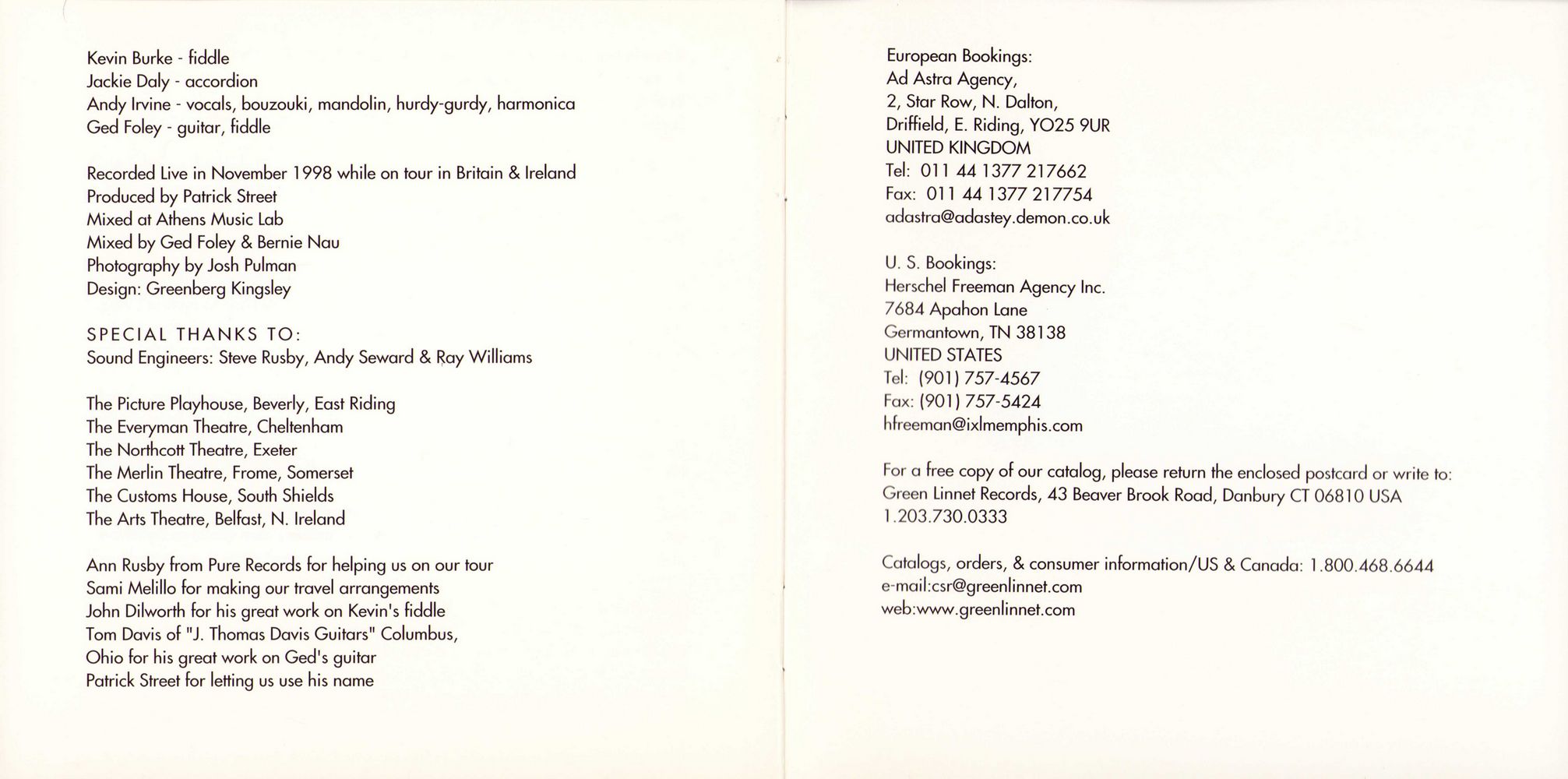 Music for a Found Harmonium — This intriguing piece was written by the late Simon Jeffes from The Penguin Cafe Orchestra. Arty McGlynn introduced it to Patrick Street who recorded it on Irish Times (GLCD 1 105) in 1990. Many people have recorded versions since then, and it has become a very popular favourite.