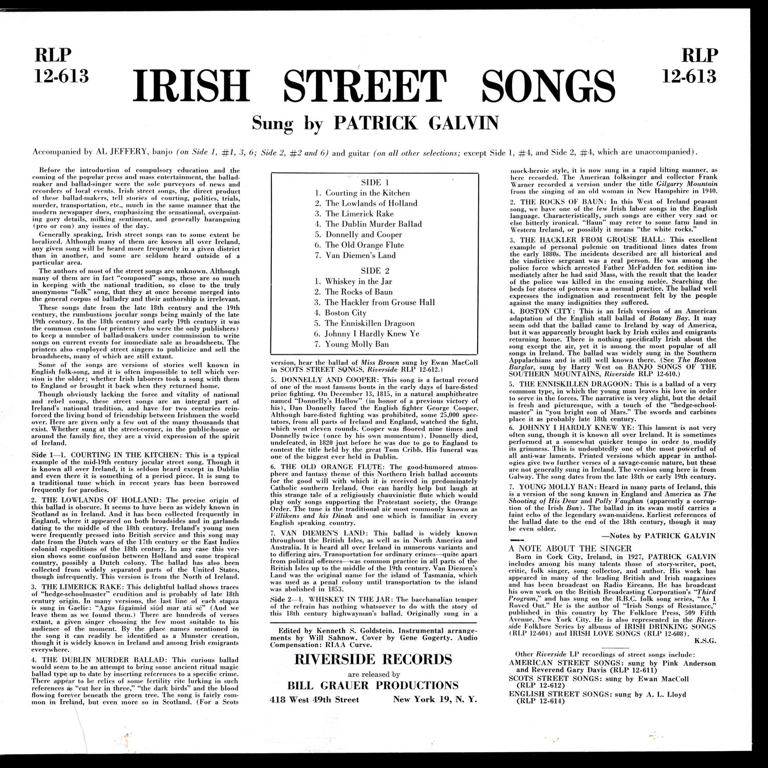 Ewan MacColl in SCOTS STREET SONGS, (Riverside RLP 12-612.).