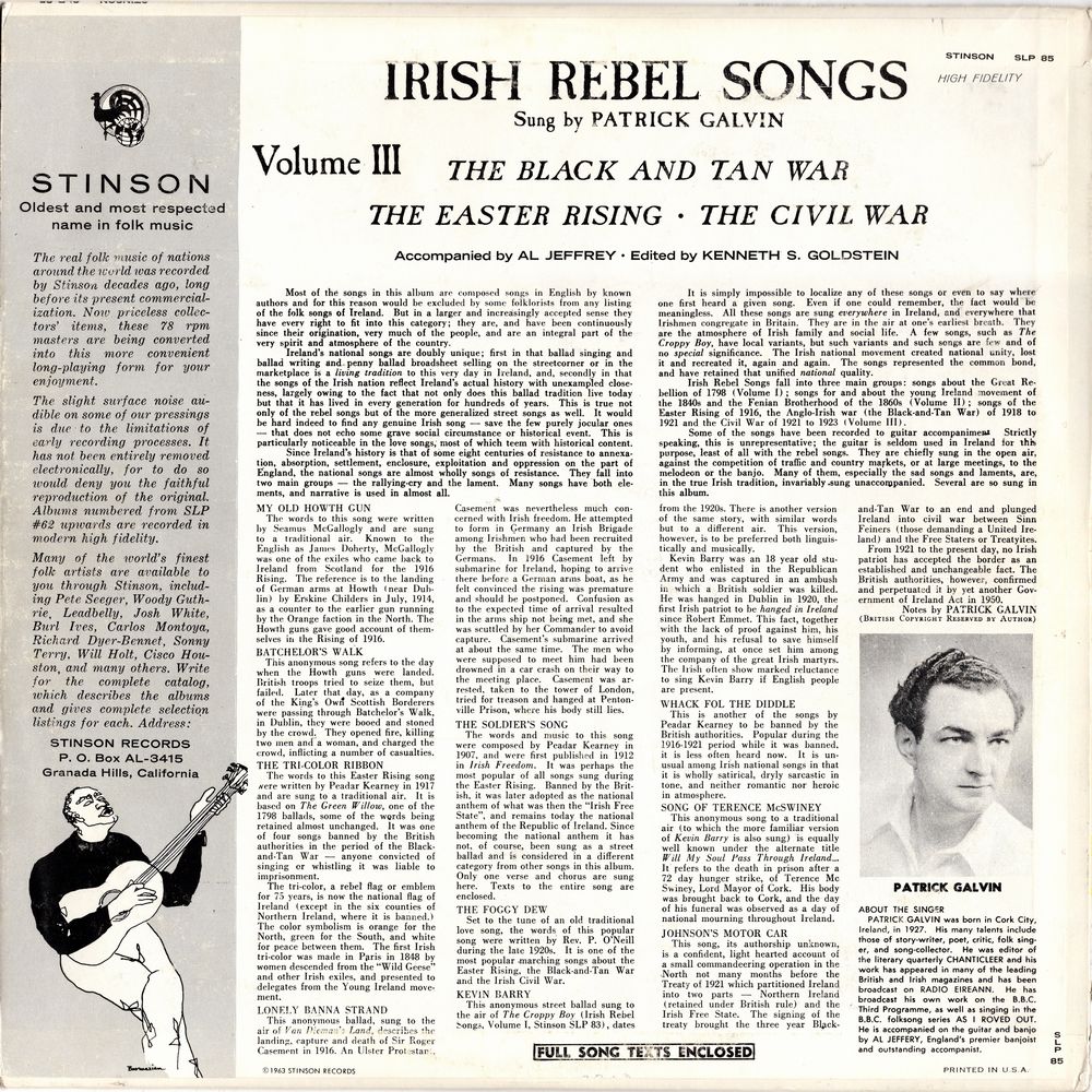 Patrick Galvin   •   Irish Rebel Songs – Volume III: The Easter Rising - The Civil War - The Black And Tan War [12"]