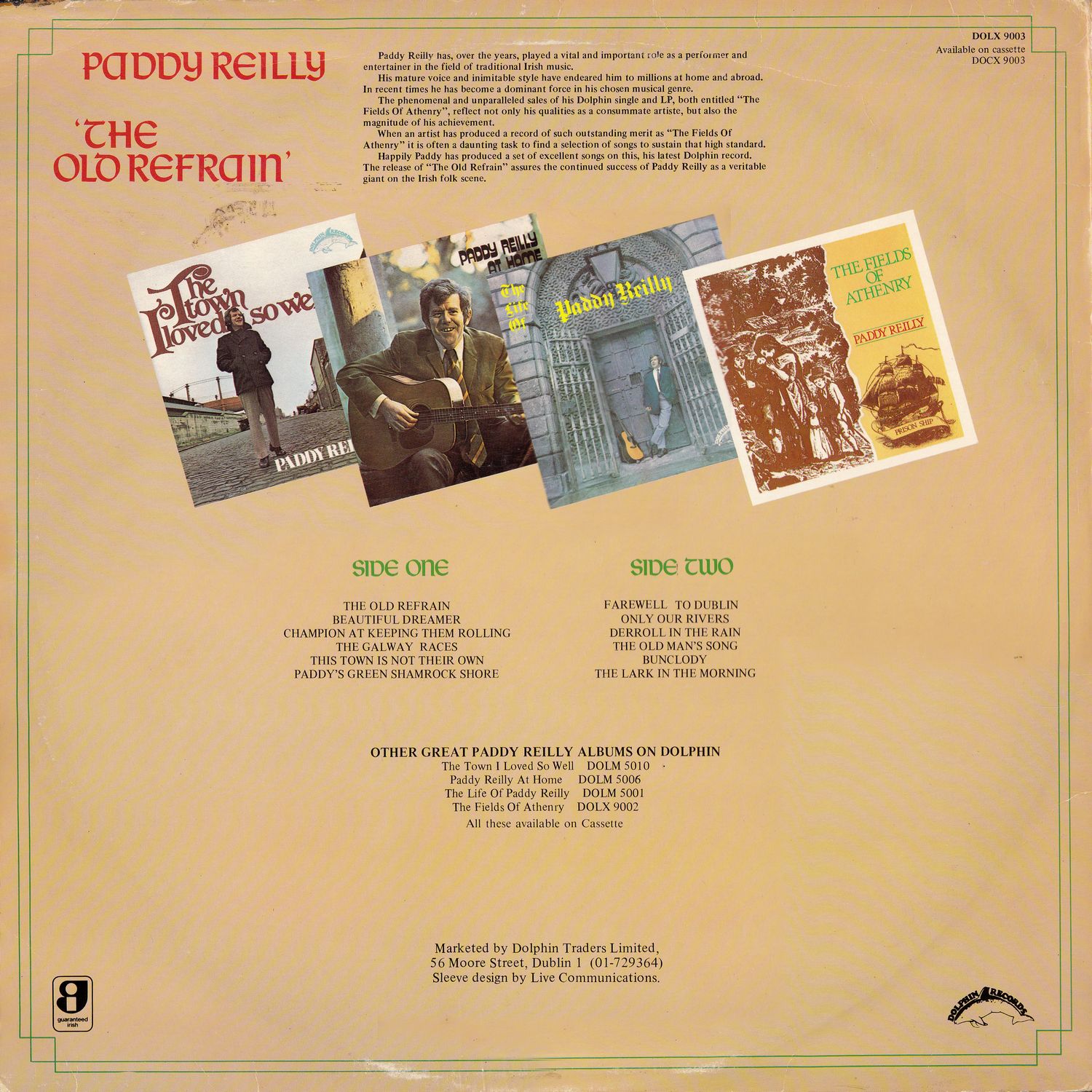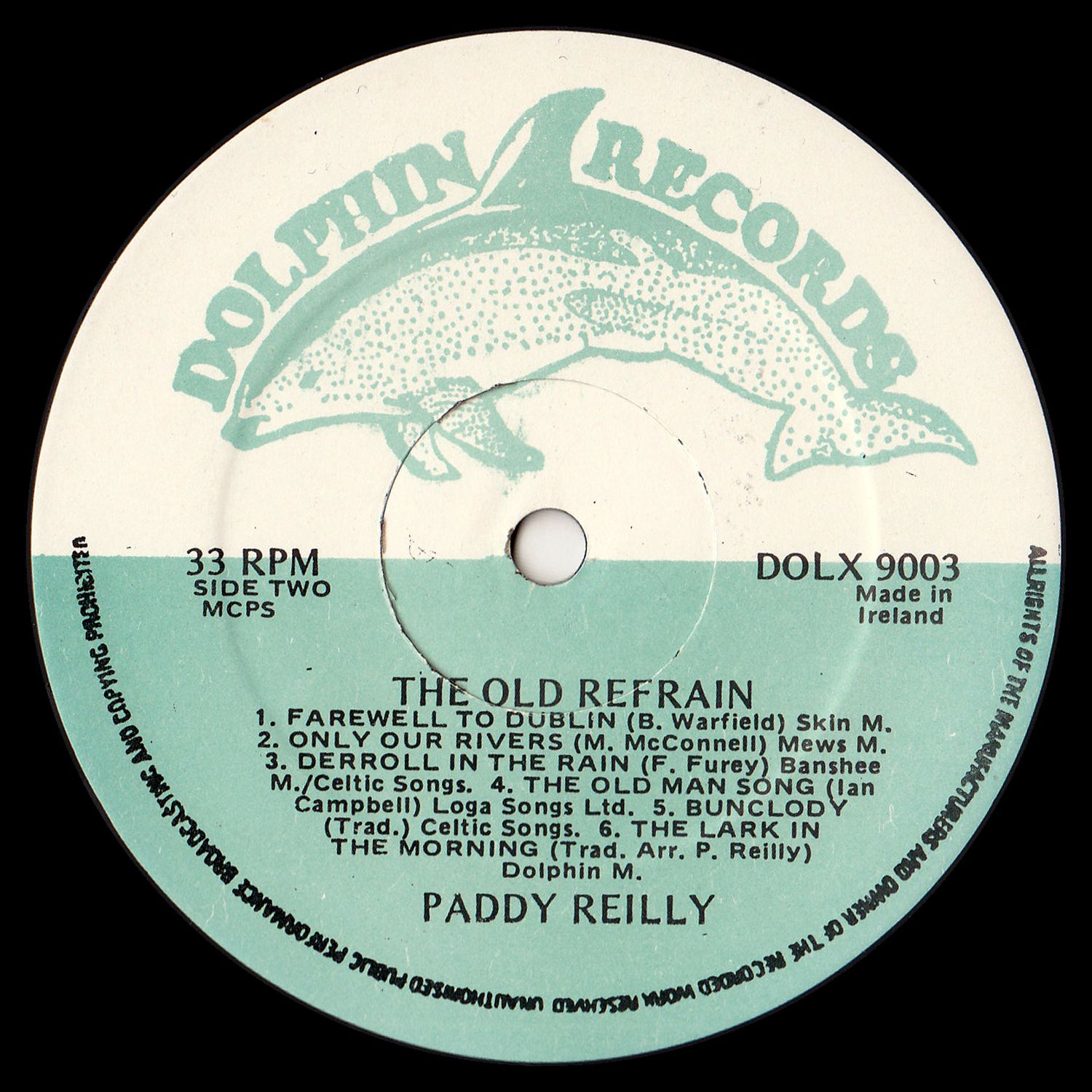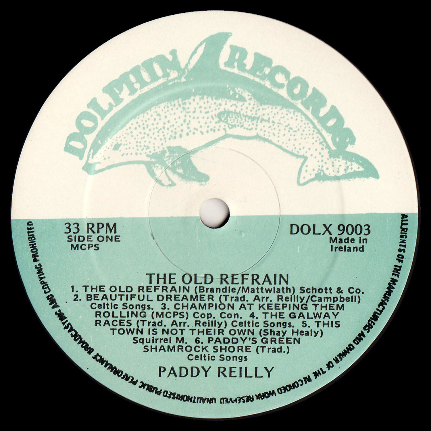 Happily, Paddy has produced a set of excellent songs on this, his latest Dolphin record. The release of "The Old Refrain" assures the continued success of Paddy Reilly as a veritable giant on the Irish folk scene.