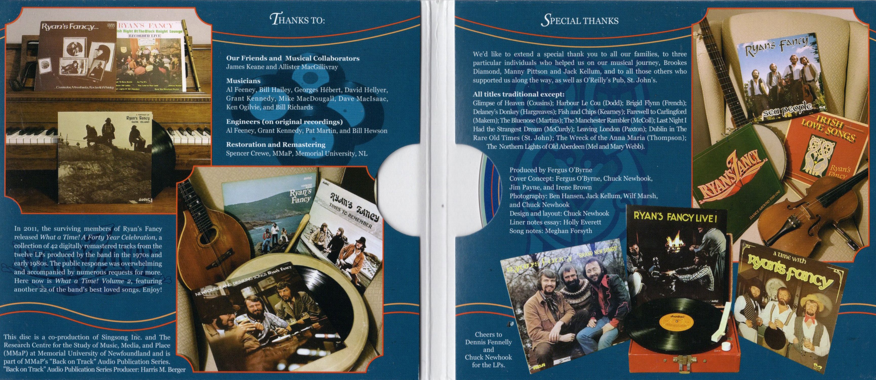 In 2011, the surviving members of Ryan's Fancy released What a Time! A Forty Year Celebration, a collection of 42 digitally remastered tracks from the twelve LPs produced by the band in the 1970s and early 1980s. The public response was overwhelming and accompanied by numerous requests for more. Here now is What a Time! Volume 2, featuring another 22 of the band's best loved songs. Enjoy!