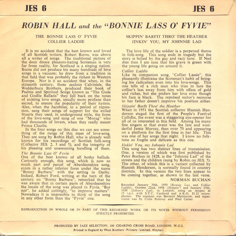 In the four songs on this disc we can see something of the range of this mass of love-song. They are sung by Robin Hall, who is already well known for his recordings of Scottish folk-song (Collector JES. 2, 3 and 5), and the integrity of his pleasing and unassuming handling of them.
