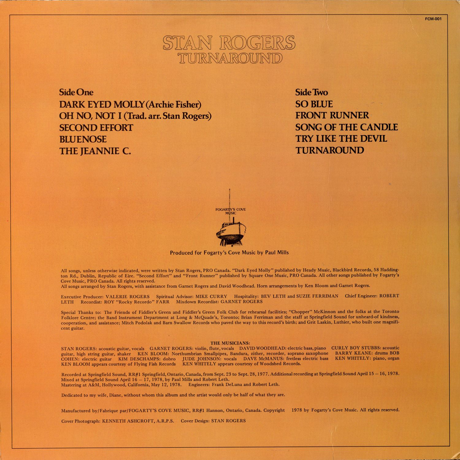 - All songs arranged by Stan Rogers, with assistance from Garnet Rogers and David Woodhead
