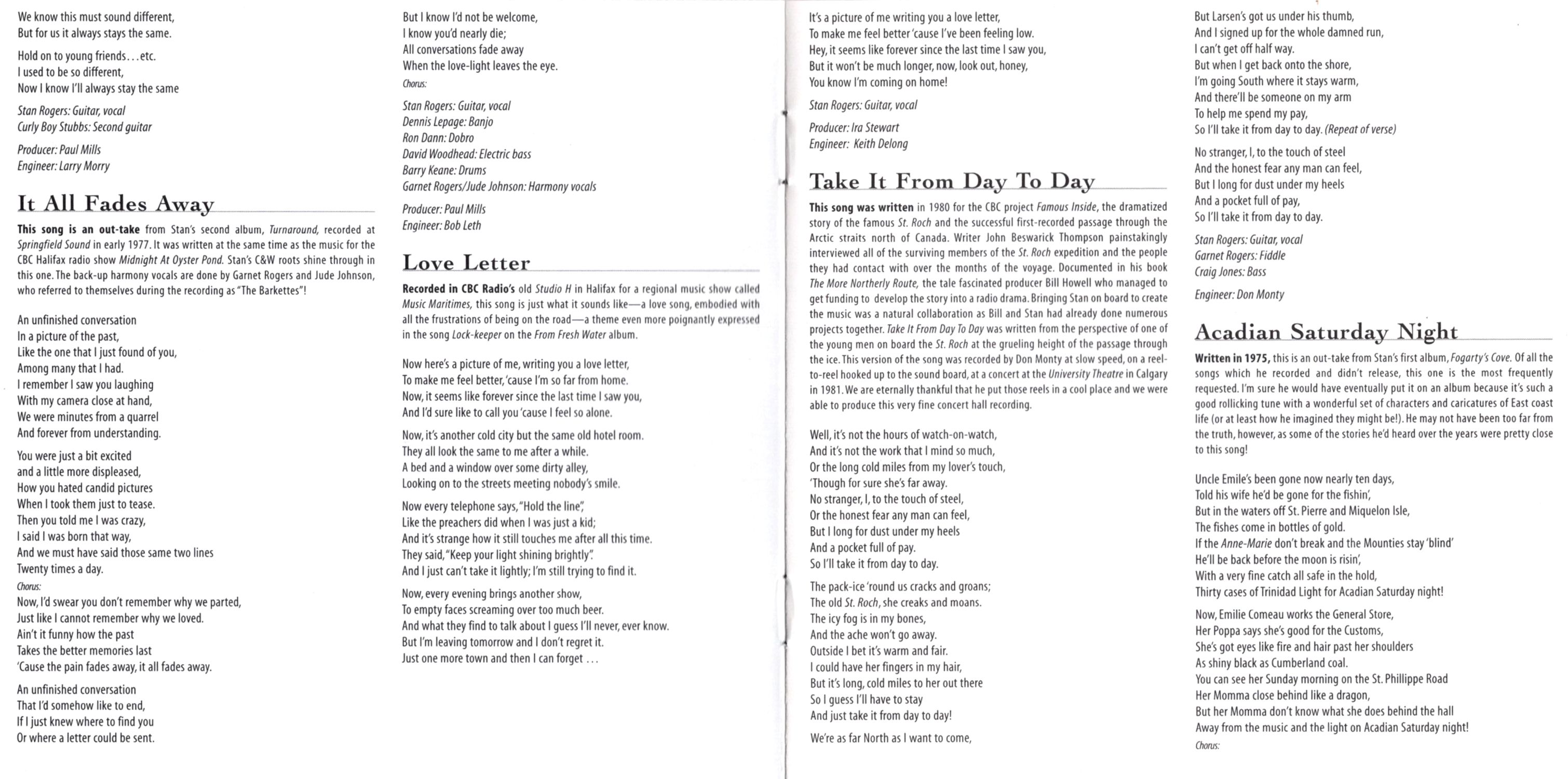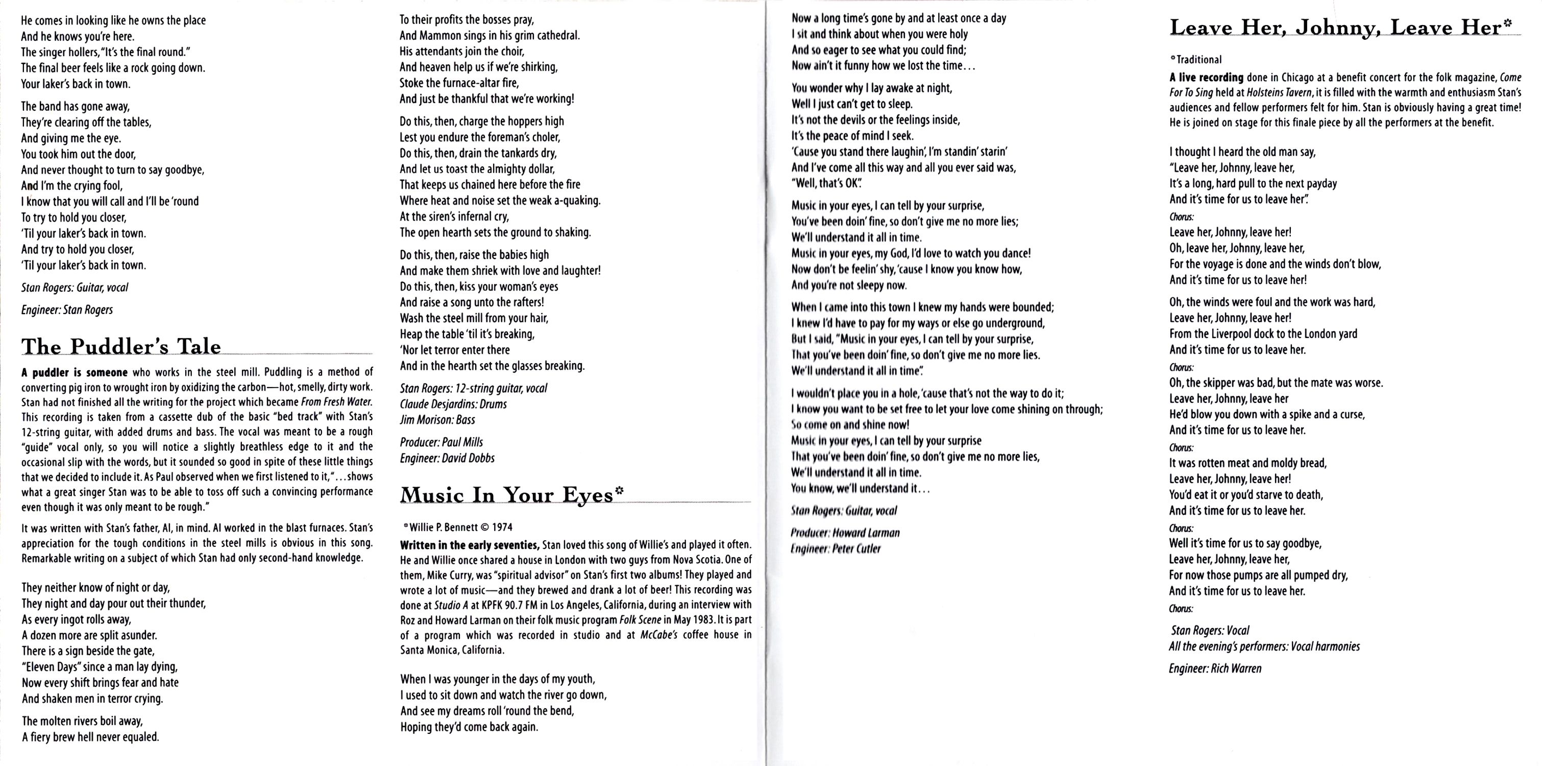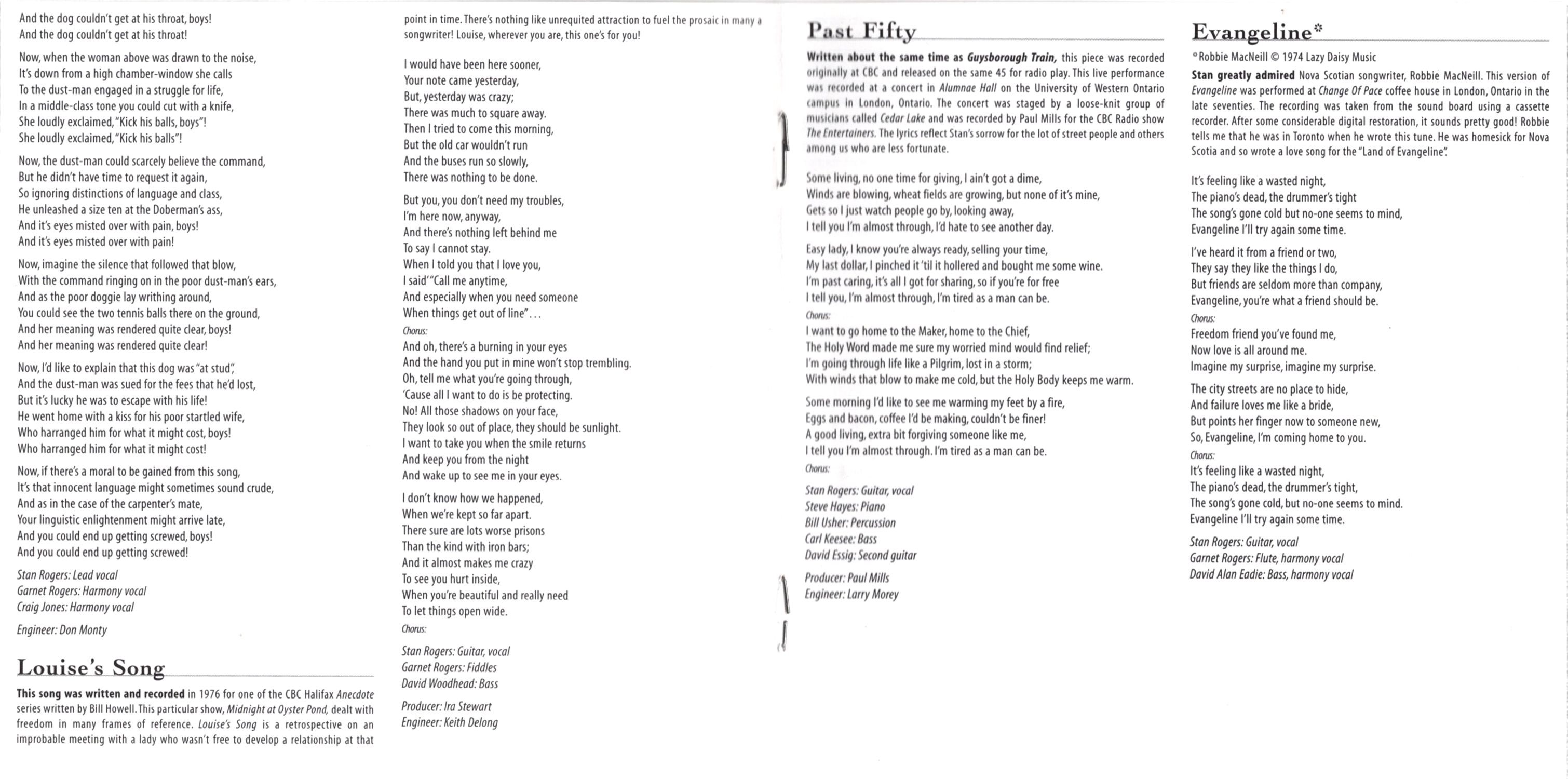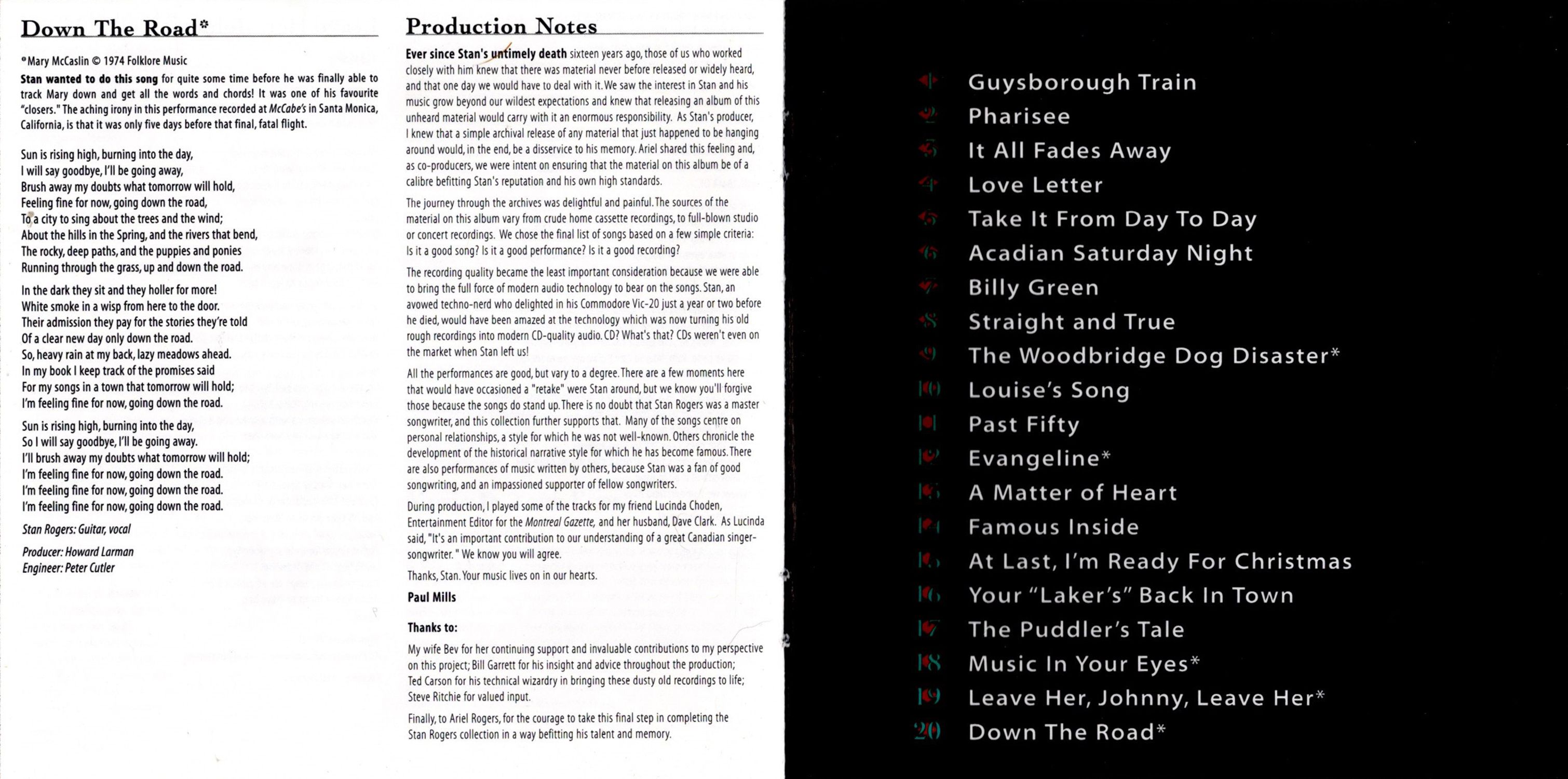 - Stan Rogers: Guitar, Vocals, & Whistling [14]