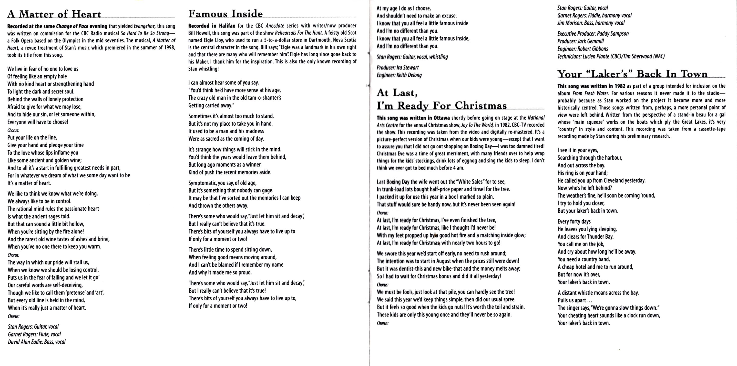 - Famous Inside — Written and recorded in 1976 for the CBC Halifax Anecdote series