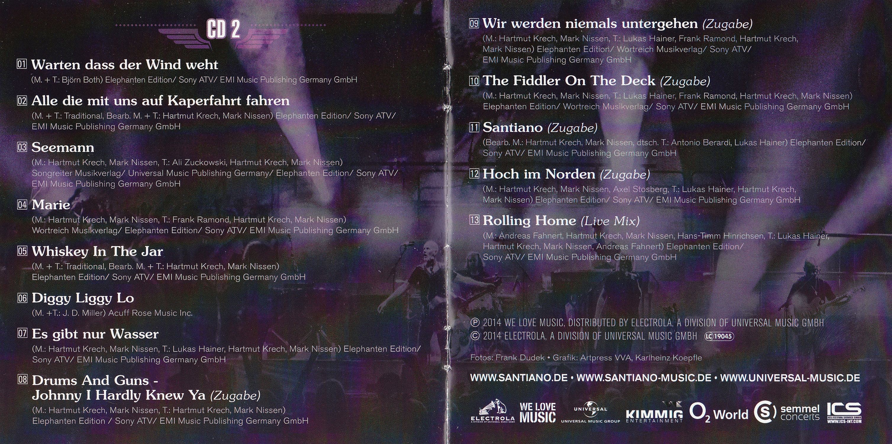 - Santiano (Zugabe/Encore) (Trad. H. Krech, M. Nissen, A. Berardi, L. Hainer)