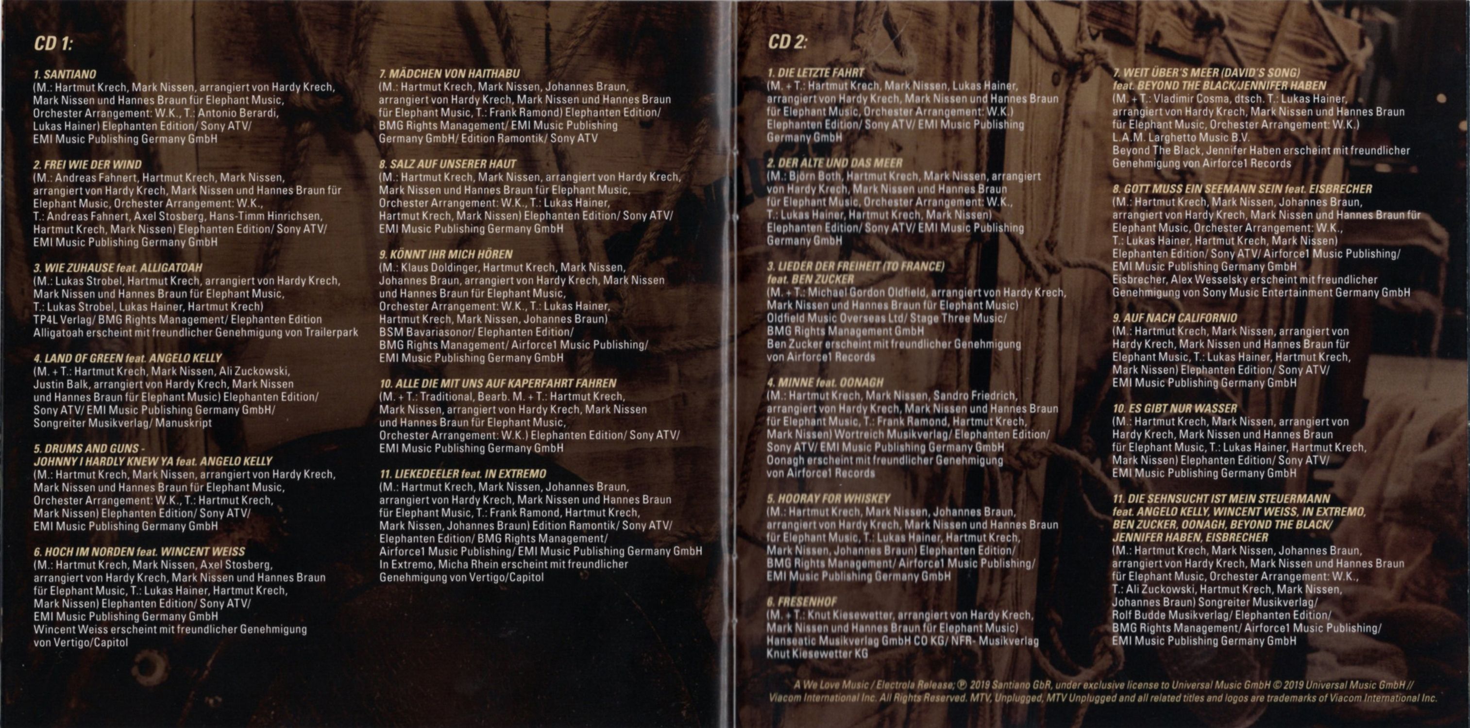- Die Sehnsucht ist mein Steuermann (H. Krech, M. Nissen, J. Braun, A. Zuckowski) —w/Angelo Kelly, Wincent Weiss. In Extremo, Benzucker, Oonagh, Beyond The Black, Jennifer Haben, Eisbrecher
