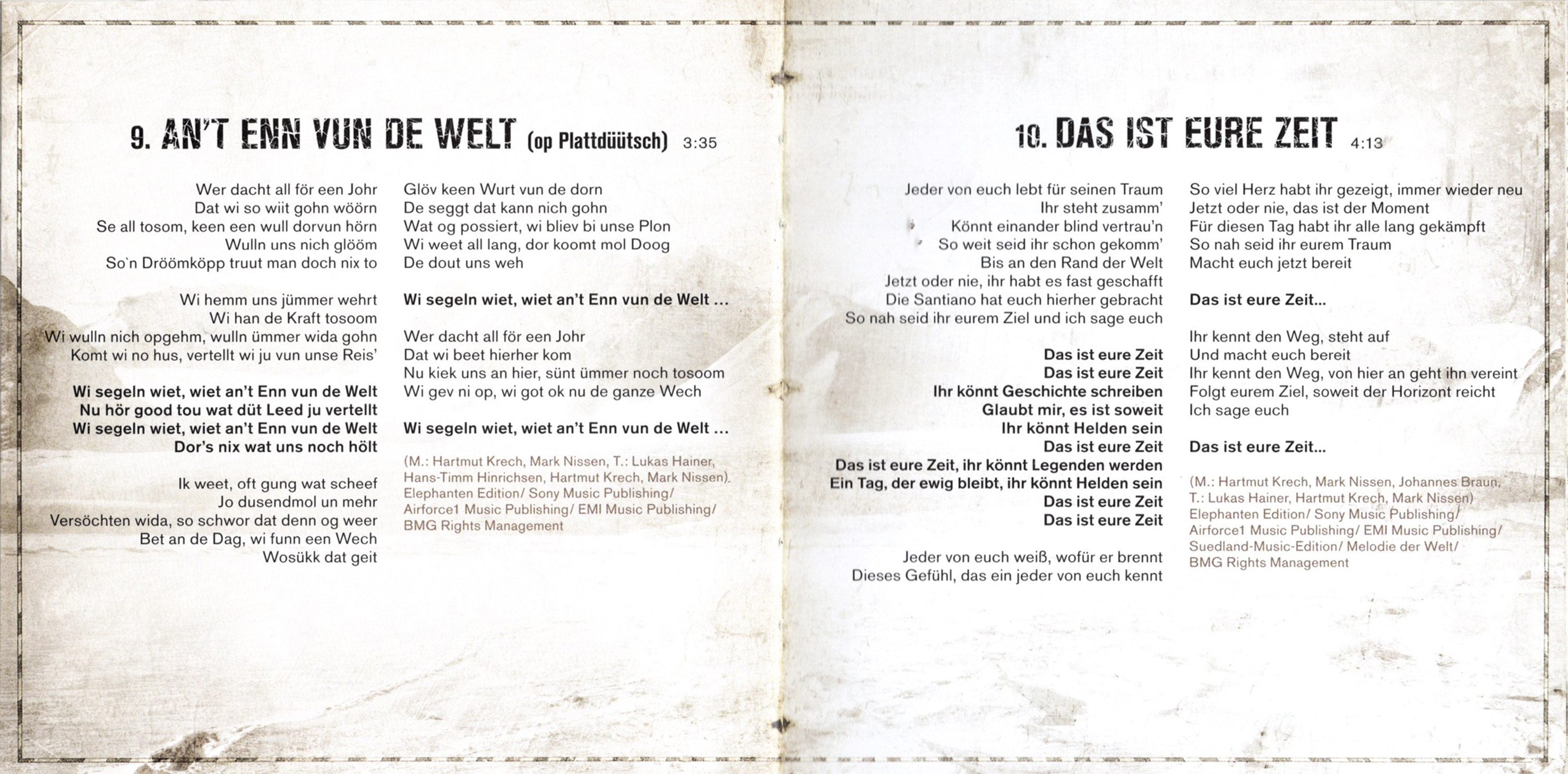 - An't Enn Vun De Welt (H. Hinrichsen, H. Krech, L. Hainer, M. Nissen)