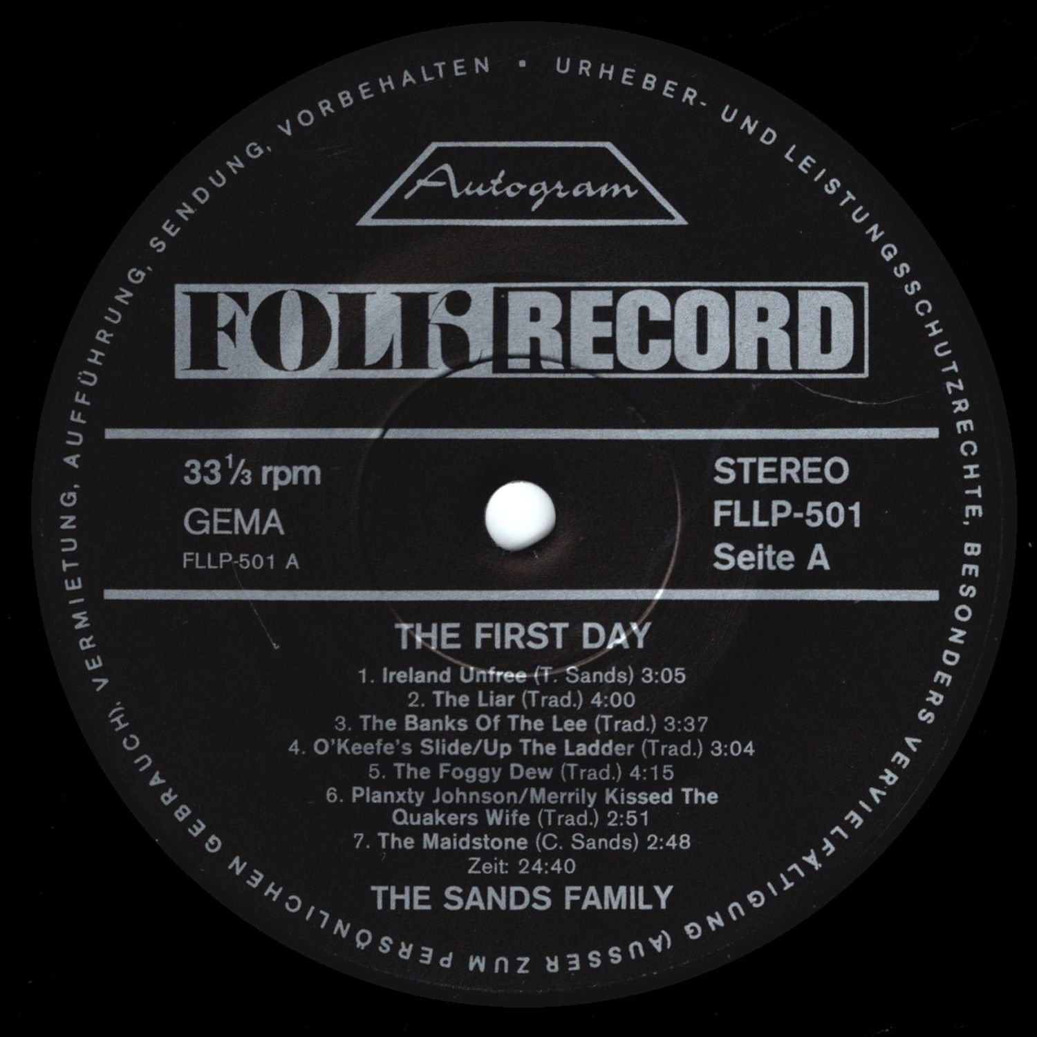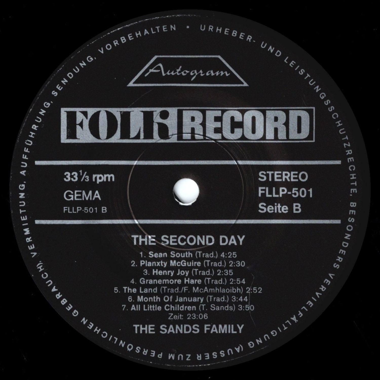 All The Little Children — This is a different recording than the same Sands song on their AUTOGRAM mini-LP (item no. ALP-195); the 2nd verse is also changed. This song once again features the poet and singer Tom Sands, who in the song bears beautiful witness to the longing for peace. It is now one of the most recorded and sung new civil rights songs in Northern Ireland. Only on the radio is this song boycotted there, as well as other committed songs by the Sands Family. When recording in Ireland they refused to change the lyrics.