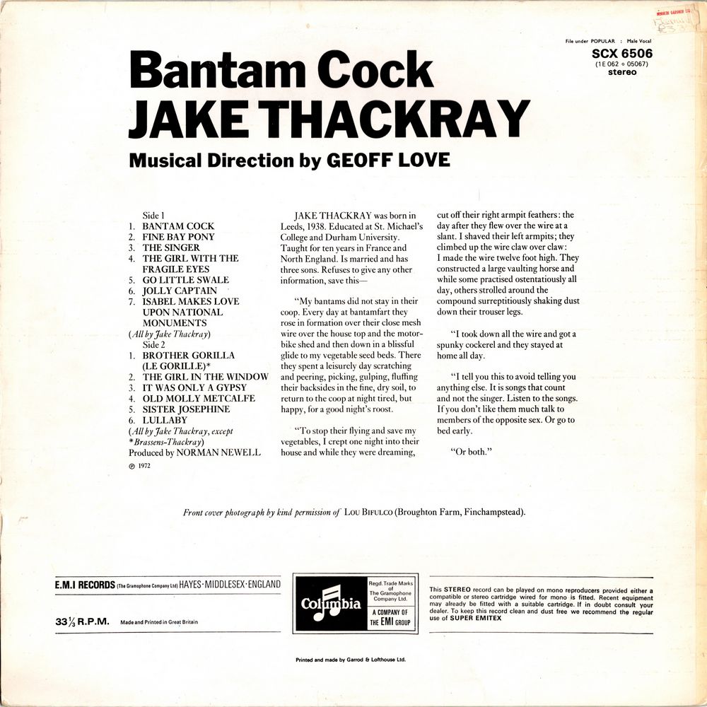 JAKE THACKRAY was born in Leeds, 1938. Educated at St. Michael's College and Durham University. Taught for ten years in France and North England. Is married and has three sons. Refuses to give any other information, save this —