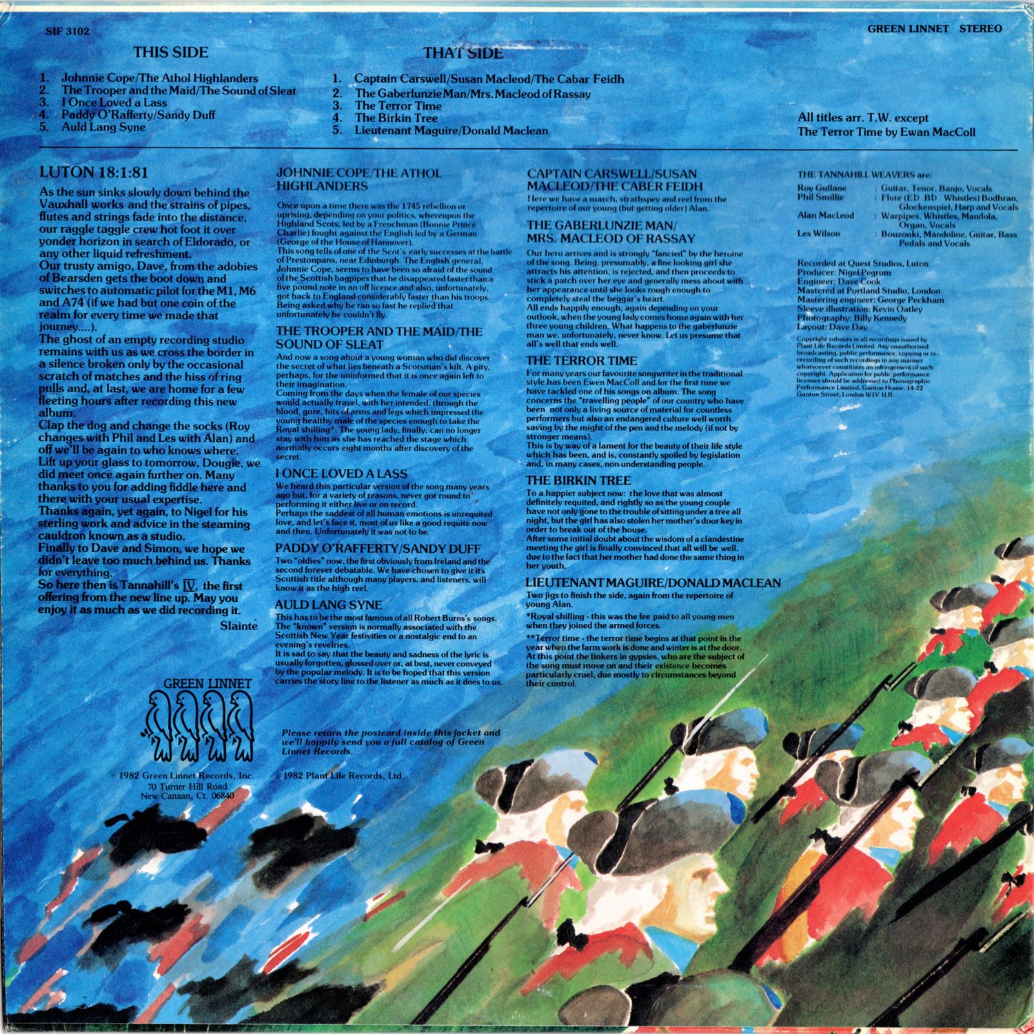 So here then is Tannahill's IV, the first offering from the new line up. May you enjoy listening to it as much as we did recording it.