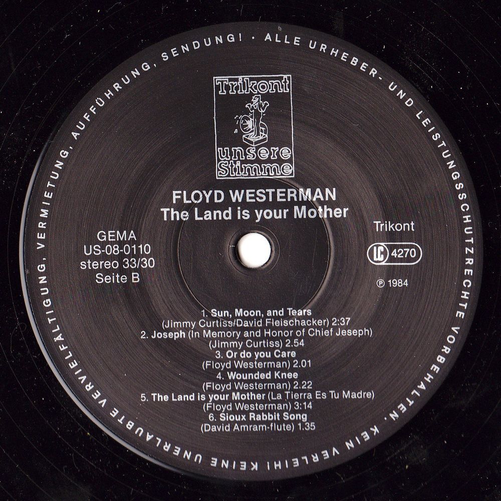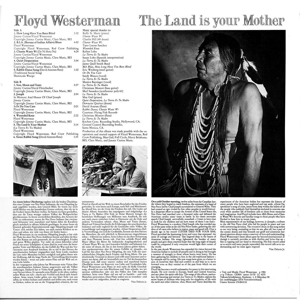 Floyd has become a world ambassador for peace in this intervening decade. He now travels to Europe, South and Central America, and any place the spirit calls him. The songs of this album, particularly the haunting and eternal "La Tierra es Tu Madre" express the secret hopes of millions who long only for simplicity of life with the earth and other relatives. "Sun, Moon and Tears" describes the experiences of the American Indian but expresses the history of many people who have been neglected and cast aside. "Quiet Desperation" a song of cities, issues from deep within the hearts of all the people who suddenly find themselves enclosed in concrete canyons while another life of freedom calls to them from memories and imagination. And Floyd includes here "BIA Blues" and "Chan-te Waste Wi" favorite and familiar songs to those people who have flocked to hear him in recent years.