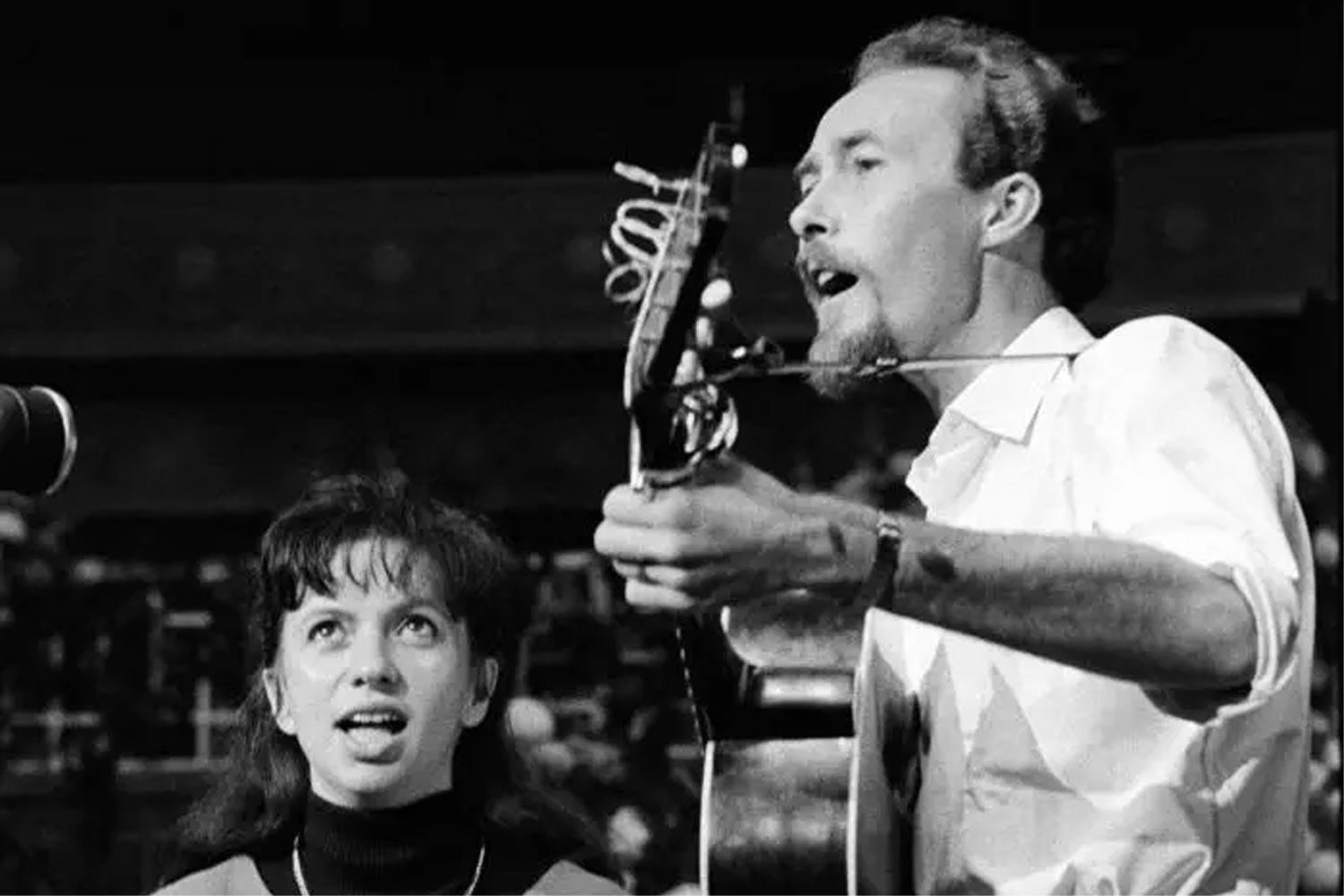 " … Finally, as a contrast to the rhythm of the electric guitars, the troubadours, from England, Colin Wilkie and Shirley Hart, proclaimed the permanency of the rights of folk song and the poetry of words."