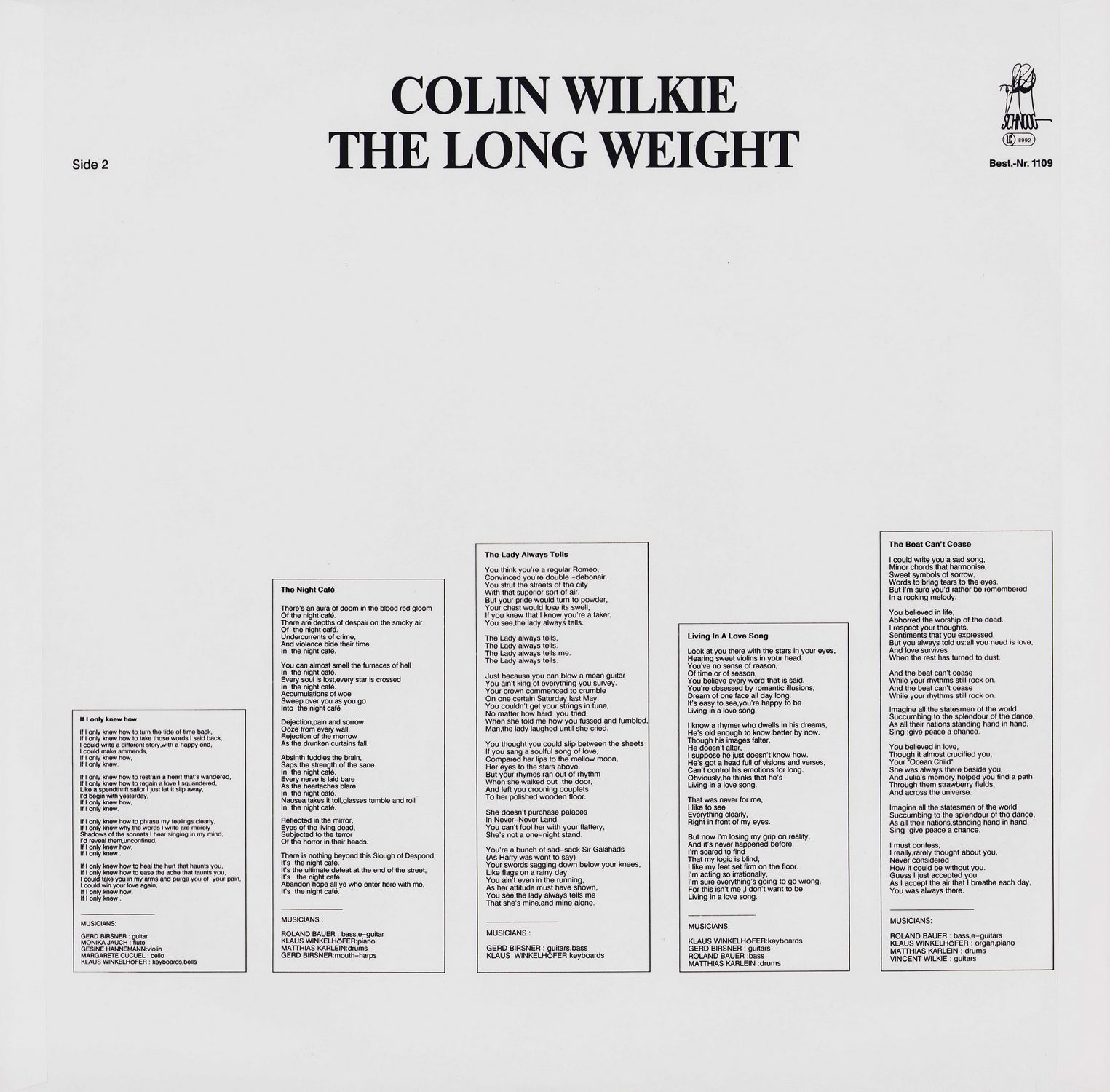 - All tracks Written By Colin Wilkie, unless otherwise noted