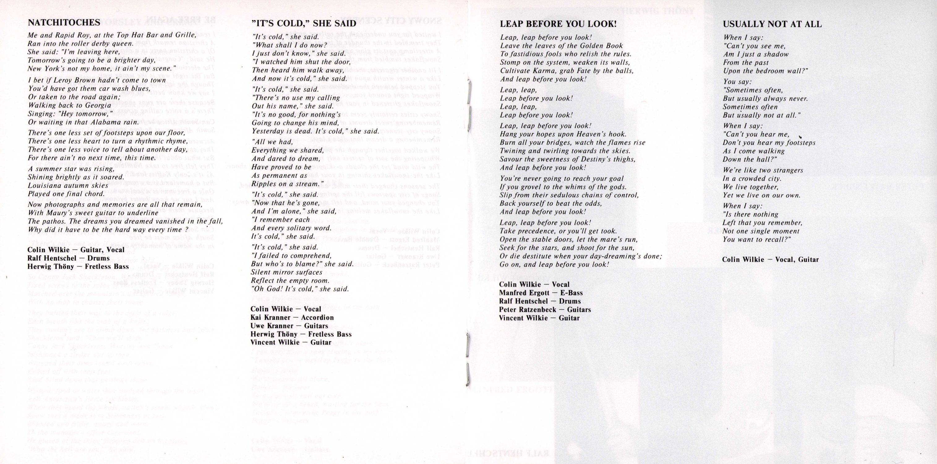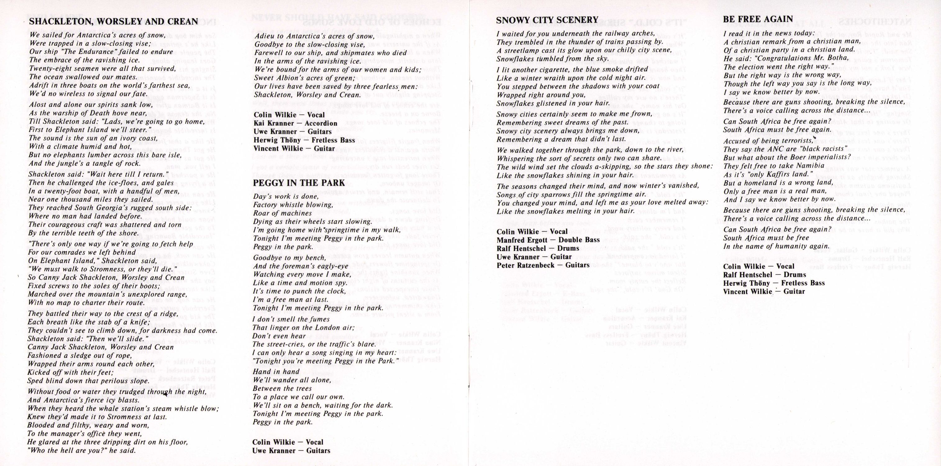 - All Arrangements by Vincent Wilkie & Uwe Kranner, unless otherwise noted