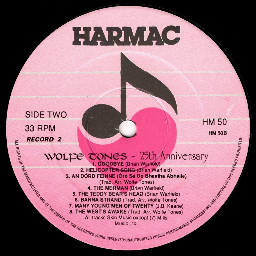 "Mots and Lads, youngwans and youngfellas, auld fellas, like myself and auld wans as well" can anything beat the elbows of the WOLFE TONES when they pile on the power strumming their musical instruments during a session or a gig. You know what I mean, that magical atmosphere when the air is sparkling with electricity, when everyone is in good humour, all holding hands and all in the one spirit of unity which is more like a large family gathering and a private celebration. "Let the People Sing" "Irish Eyes" "My Heart is in Ireland" and that masterpiece written by Thomas Davis, "A Nation Once Again". It was Davis who said that 'a Nation without its language is only half a Nation'. Keeping the words of Davis in mind, the WOLFE TONES hit the charts as Gaedhilge, with a wide selection of songs in the Irish Language. But its not just Davis and the Gaelic songs, it is songs of every description from every part of Ireland and the world, and when the songs are not already in print, the WOLFE TONES write the songs themselves. From Little Jimmy Murphy, to Argentina and from Padraig Pearse to Joe McDonnell. When the people of the city of Edinburgh wanted to honour James Connolly, their favourite son, they choose the title from one of Connolly's songs "Sing a Rebel Song" and who sings more rebel songs than the WOLFE TONES? The songs our fathers sung, and the songs our mothers sung as well. The first song I ever heard, the first song I ever learned was Peadar Kearney's "Tri Coloured Ribbon O" and the WOLFE TONES have recorded it. Every Friday night I listened to the street singer singing Kevin Barry and every Saturday night we all listened to Radio Eireann and the Ballad Makers telling us about the Boys of Wexford and the Felons of Our Land. After some shows the musicians or the singers disappear, but not so with the WOLFE TONES. They stick around among their fans giving another show, a talk show, answering questions, giving advice, signing autographs and posing for family photographs until all hours of the morning. In the words of Jonathan Swift, the great Dean of St. Patricks Cathedral in the