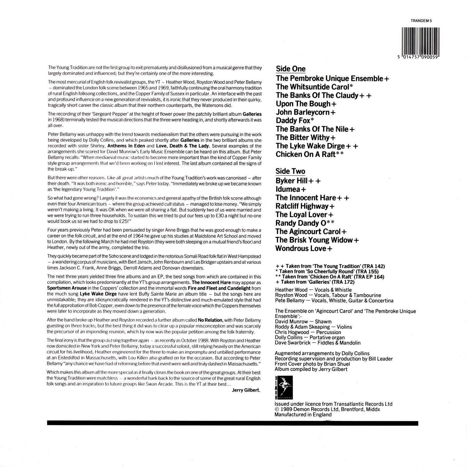 Which makes this album all the more special as it finally closes the book on one of the great groups. At their best the Young Tradition were matchless — a wonderful hark back to the source of some of the great rural English folk songs and an inspiration to future groups like Swan Arcade. This is the YT at their best …
