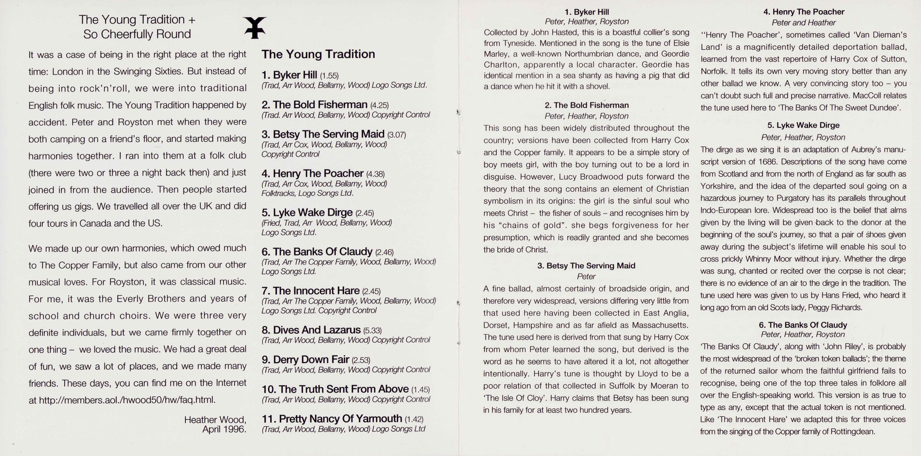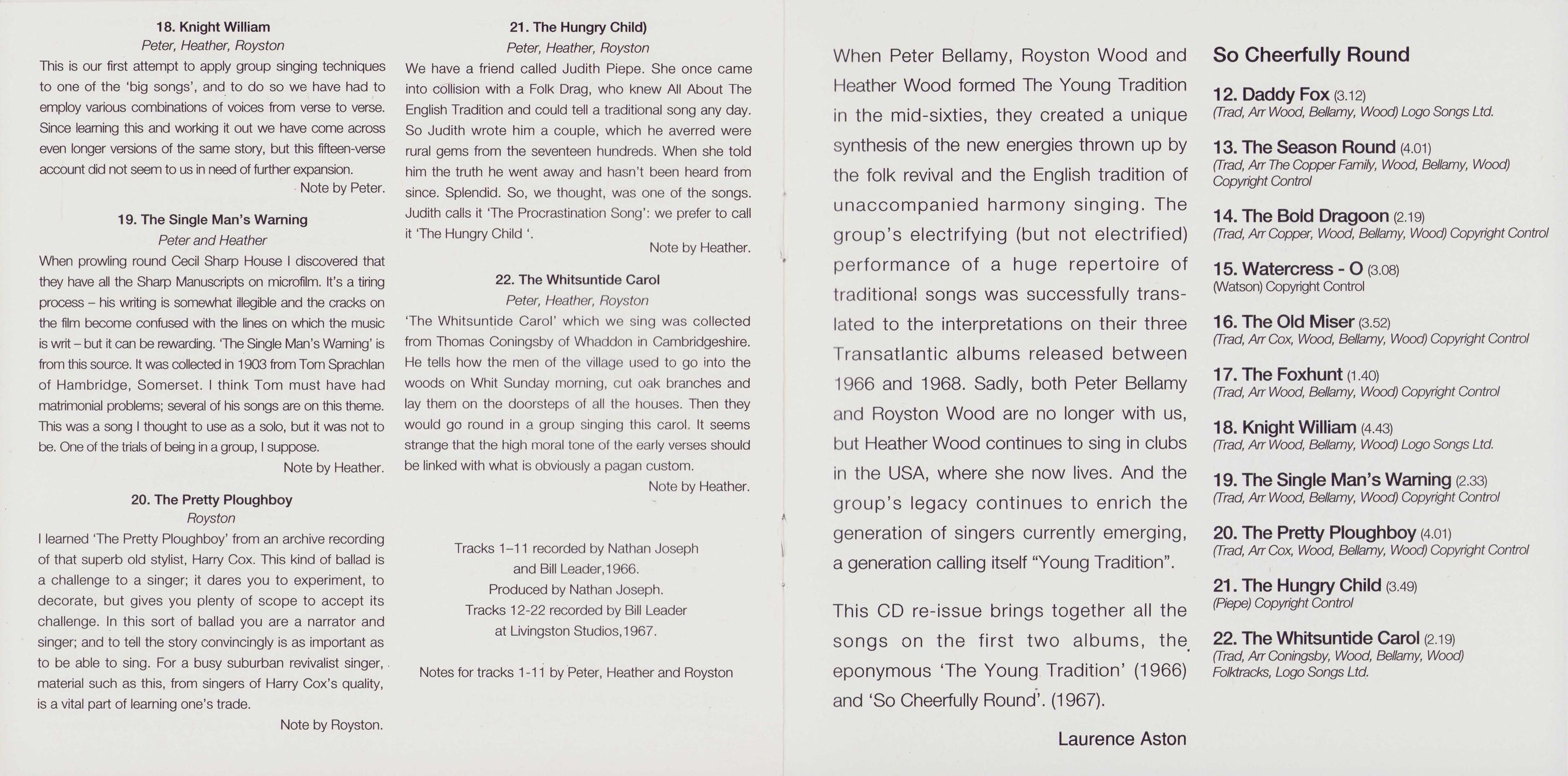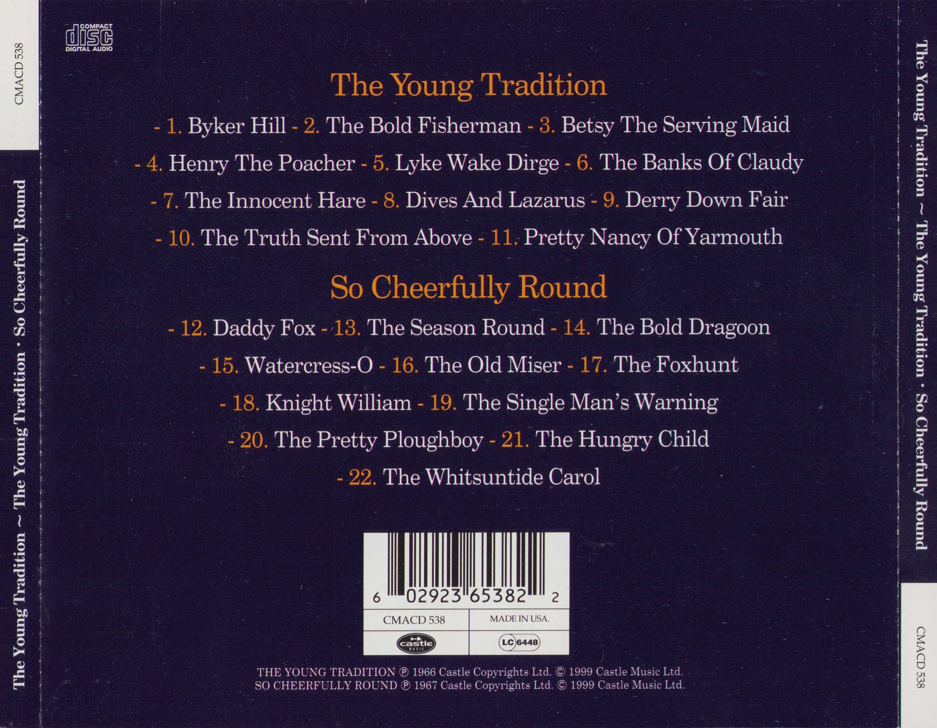 This CD re-issue brings together all the songs on the first two albums, the eponymous The Young Tradition' (1966) and 'So Cheerfully Round'. (1967).